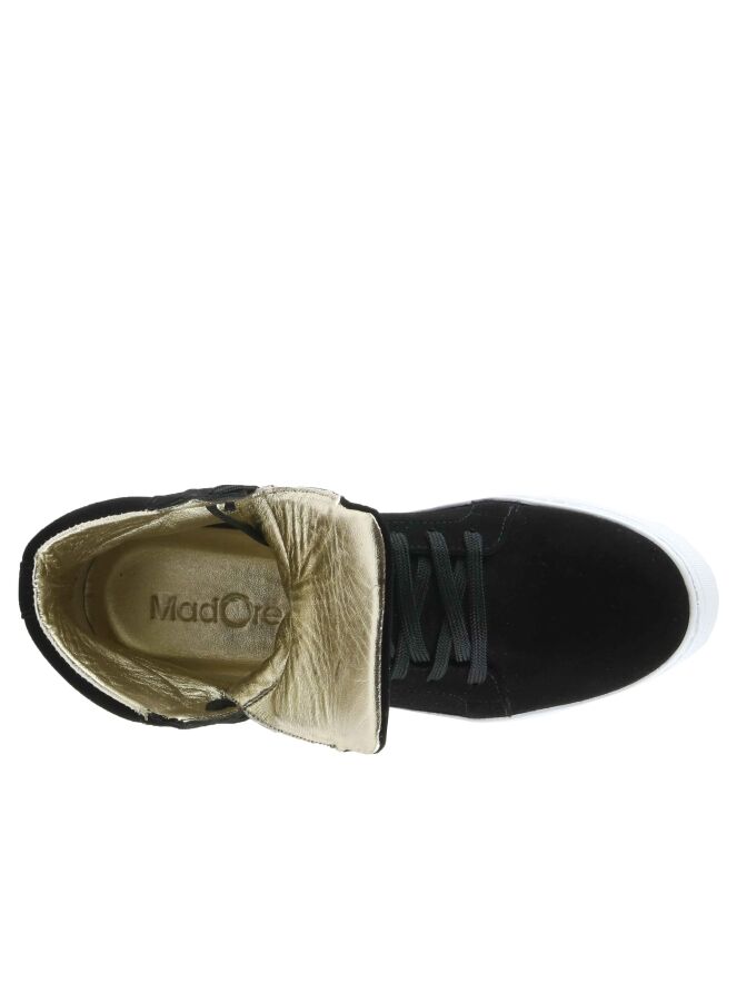 A high sneaker from Madore in the color black. The sole is white in the color. The leather lining is in a good color. The insole is removable.