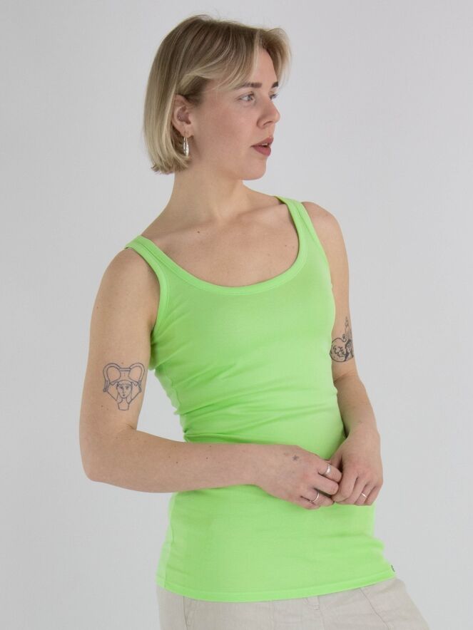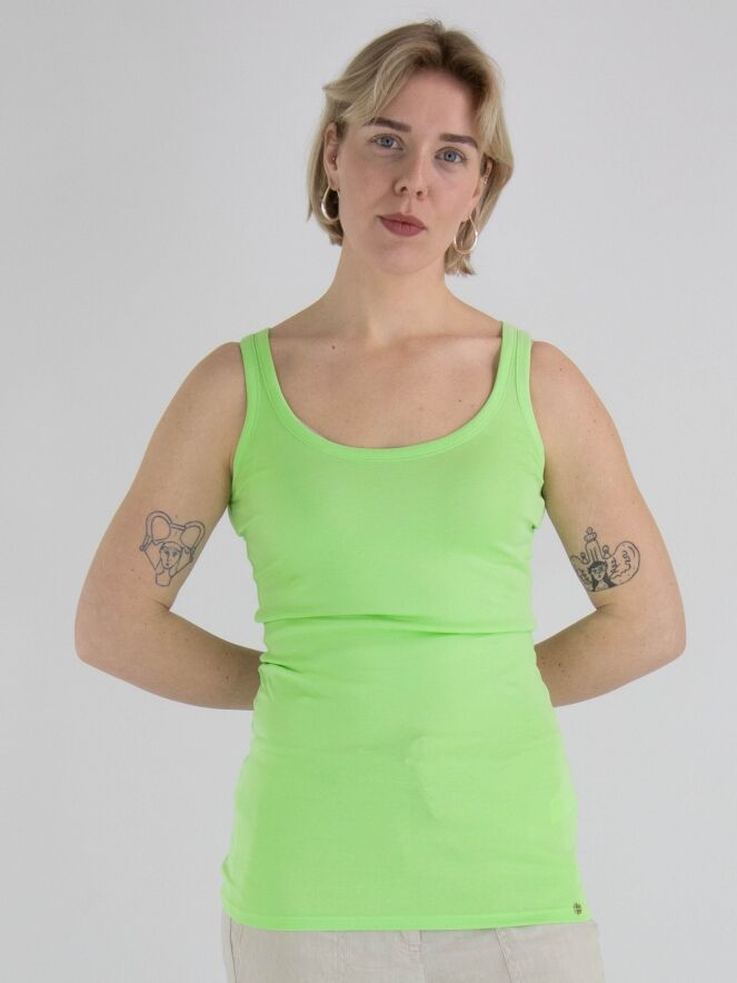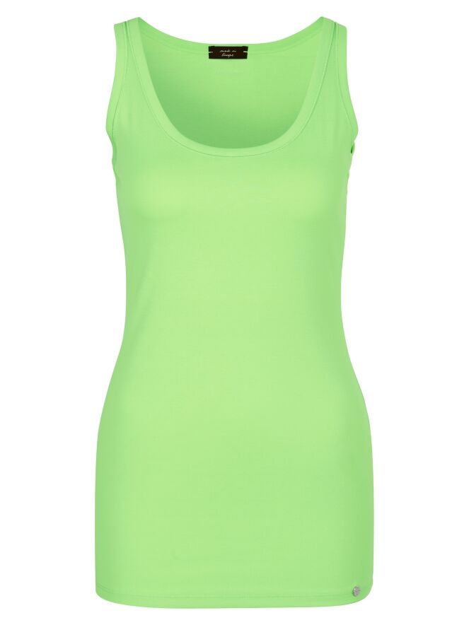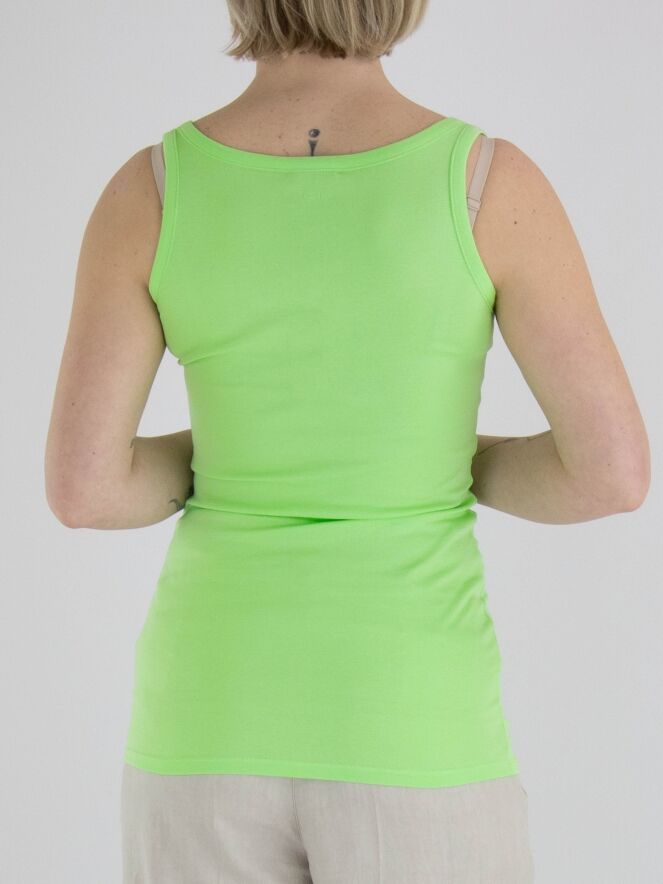 A top from Marc Cain in the color pistachio green. The top has a spacious round neckline, and the shoulder straps are 3 cm wide. This top can be washed at 30 degrees.
