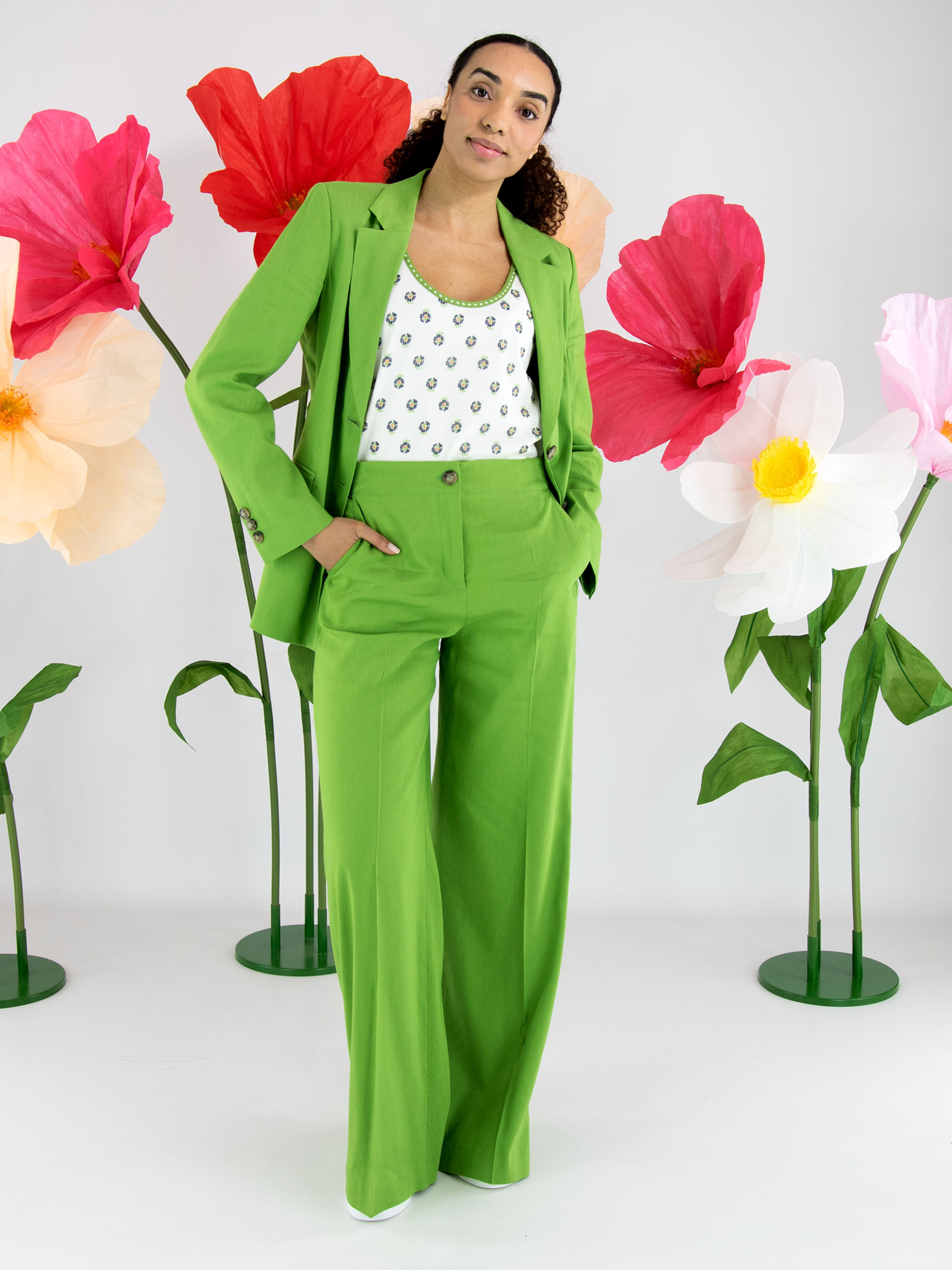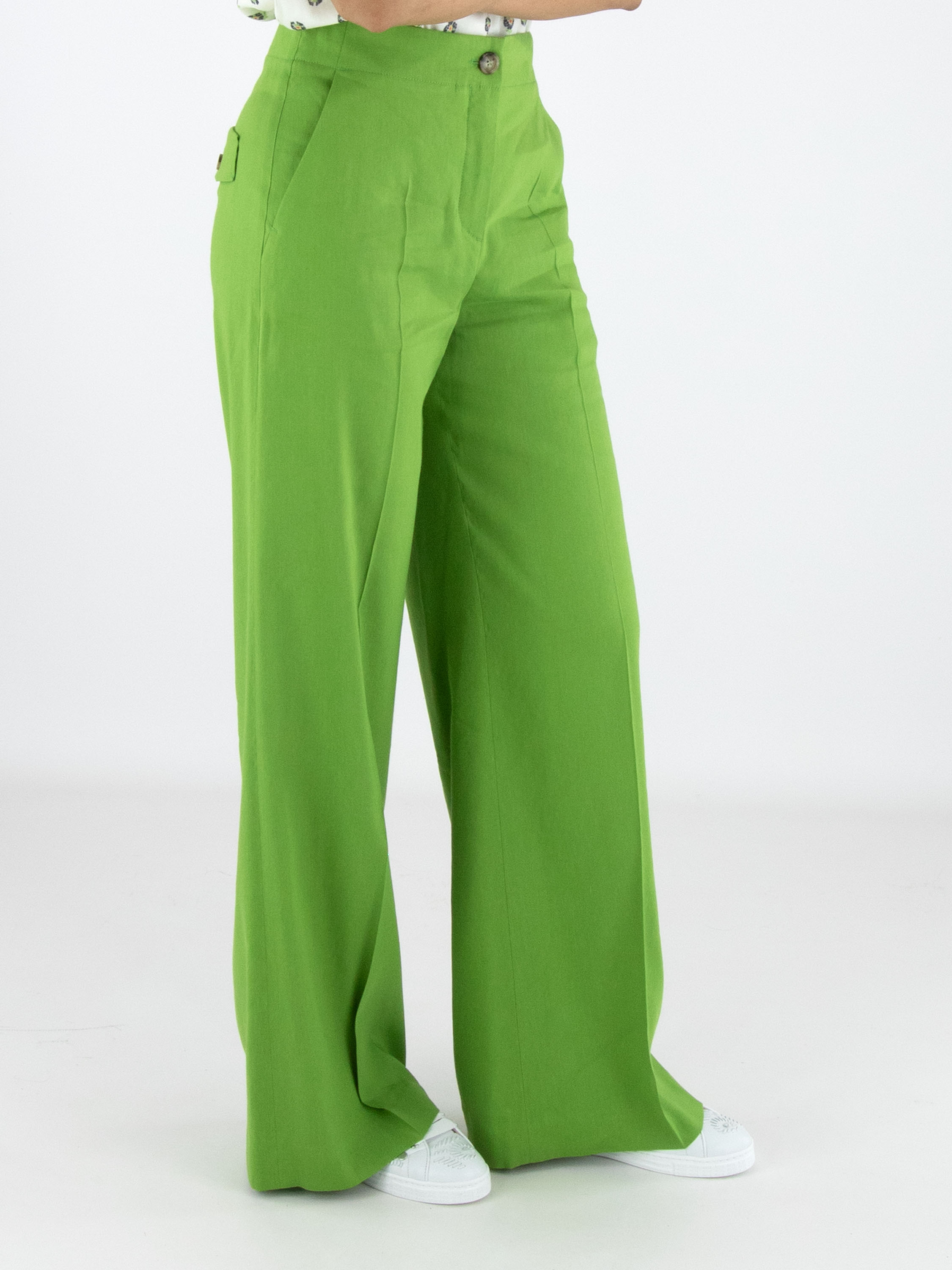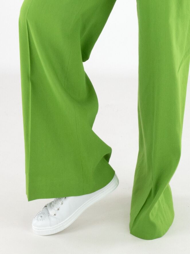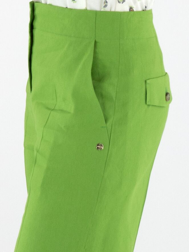Trousers by Marc Cain in a vibrant green shade. Designed with side pockets and a pressed crease along the center of the legs, it offers an elegant and polished look. These trousers can be washed at 30 degrees.