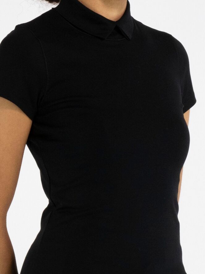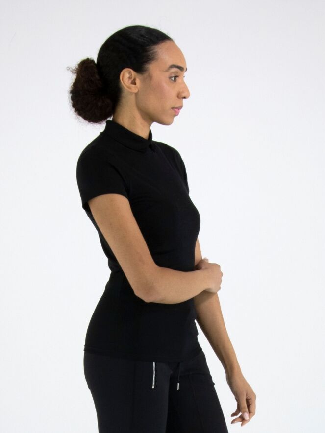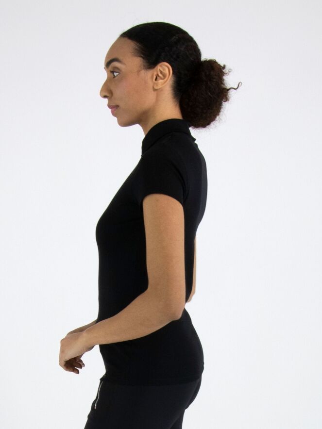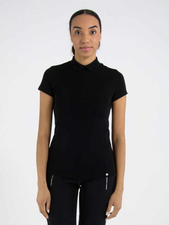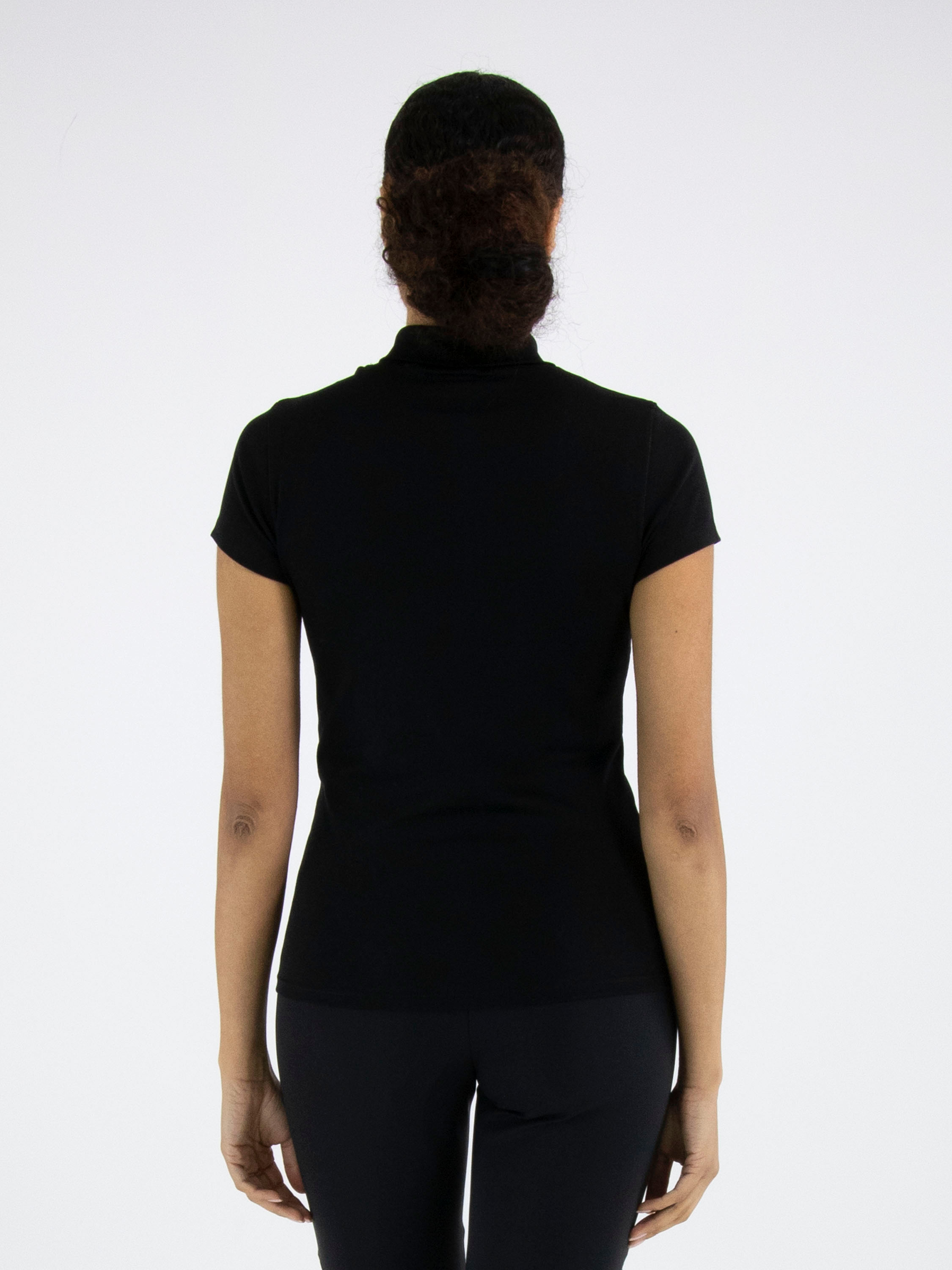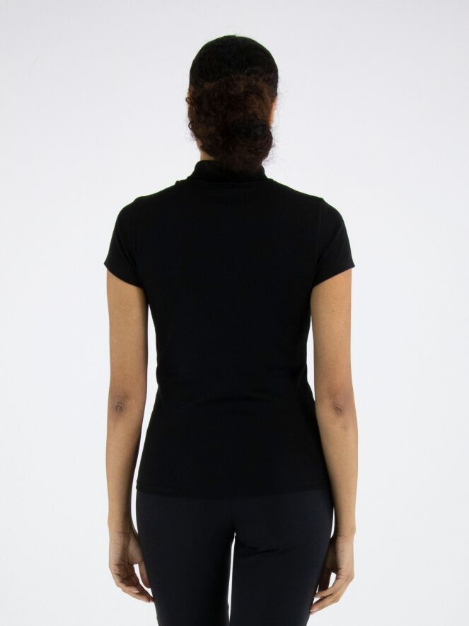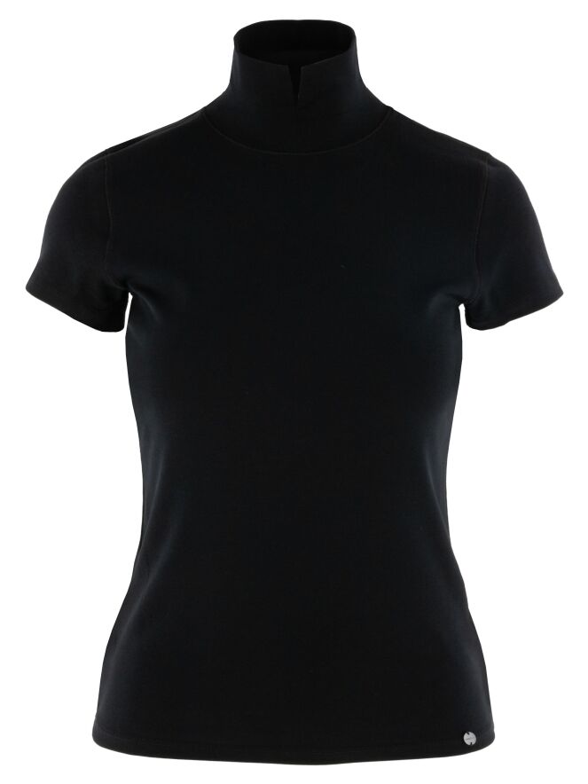 Shirt by Marc Cain in black. Featuring short sleeves and a turtleneck with a small front slit, it offers an elegant and feminine look. This luxurious Marc Cain essential can be washed at 30 degrees.