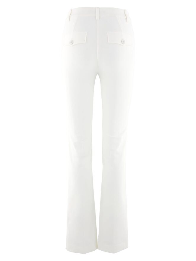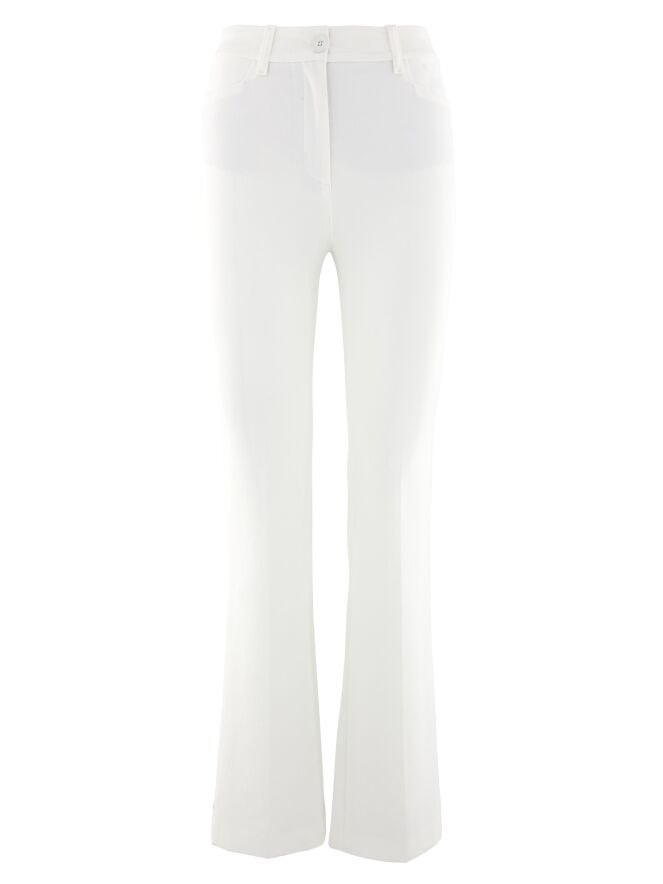 A jeans by the brand Marc Cain in the color white. The jeans have a 5 pocket style and flair pipes. These jeans should be washed at 30 degrees.