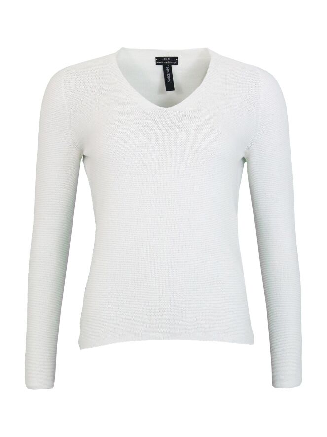 A pullover from Marc Cain essentiels in the color cream white. The pullover has a V - neck and can be washed by hand.
