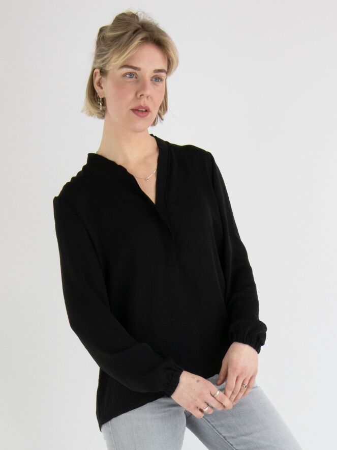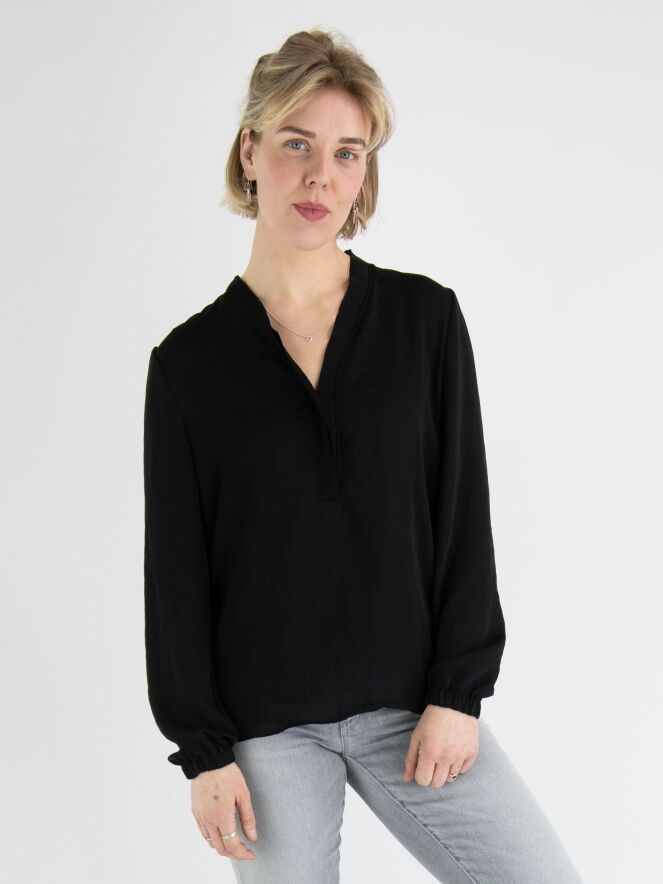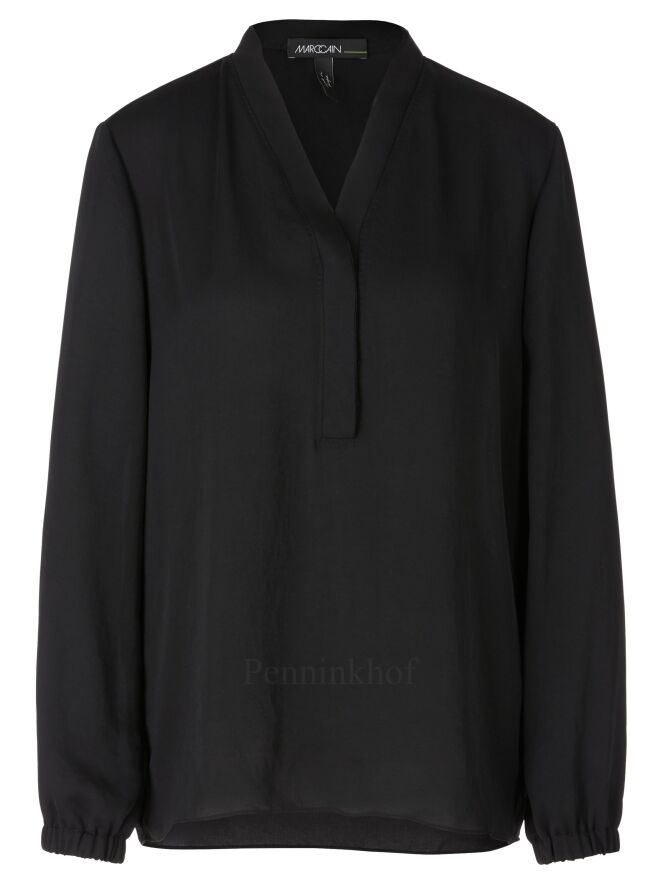 A blouse from Marc Cain in the white color. Long the edge of the V - neck is a bit in a double fabric. met a decorative door gesture naad. Aan het uiteinde van de long mouwen is an elastic fijn geplooide bis. This blouse may have been washed for 30 degrees.
