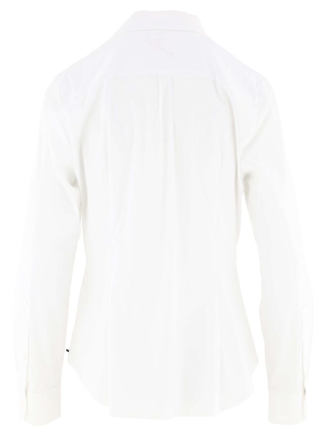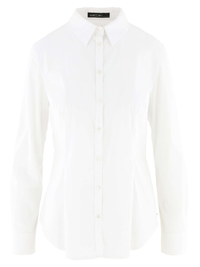 A basic blouse of the brand Marc Cain in the color white The blouse has wide cuffs of 8 cm. This blouse may be washed at 30 degrees.