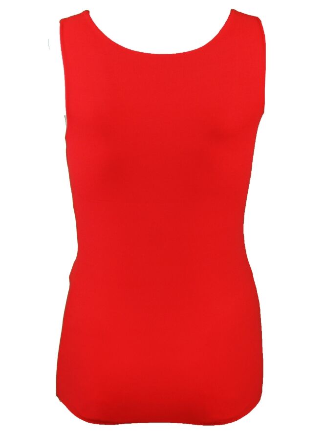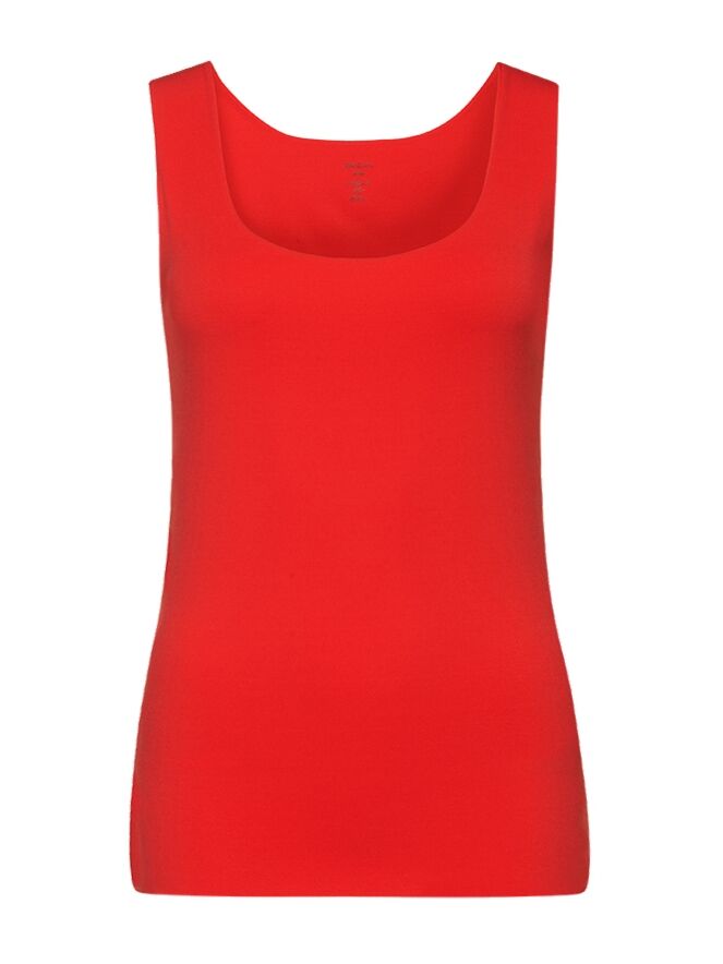 A basic top from the brand Marc Cain essentiels in the color red. The top has a double fabric and the shoulder straps are 4 cm wide. The top may be washed at 30 degrees.