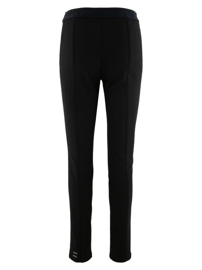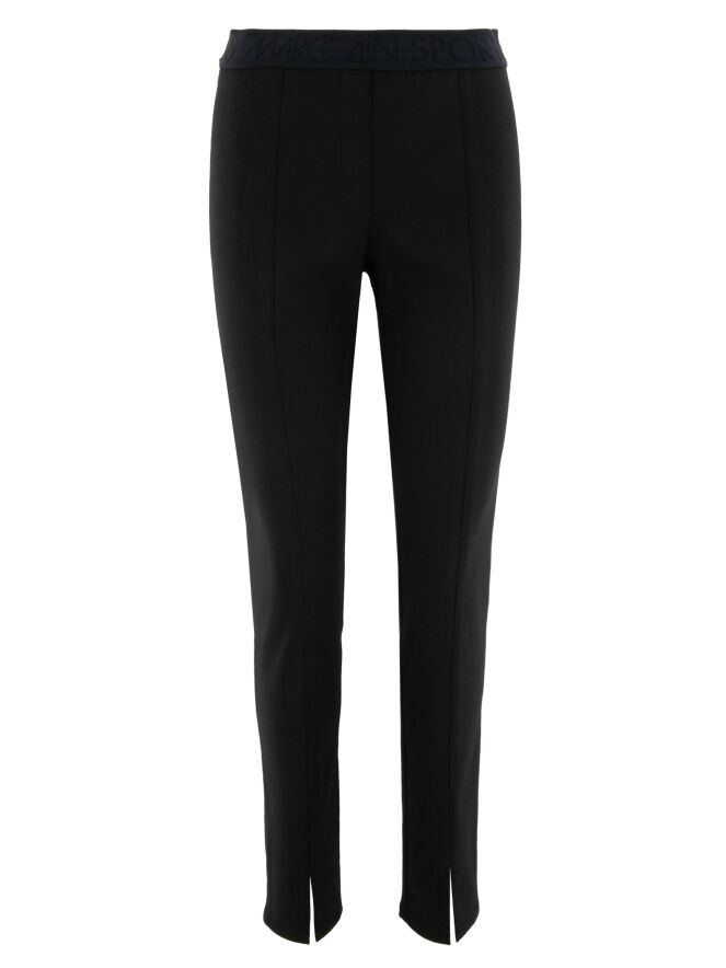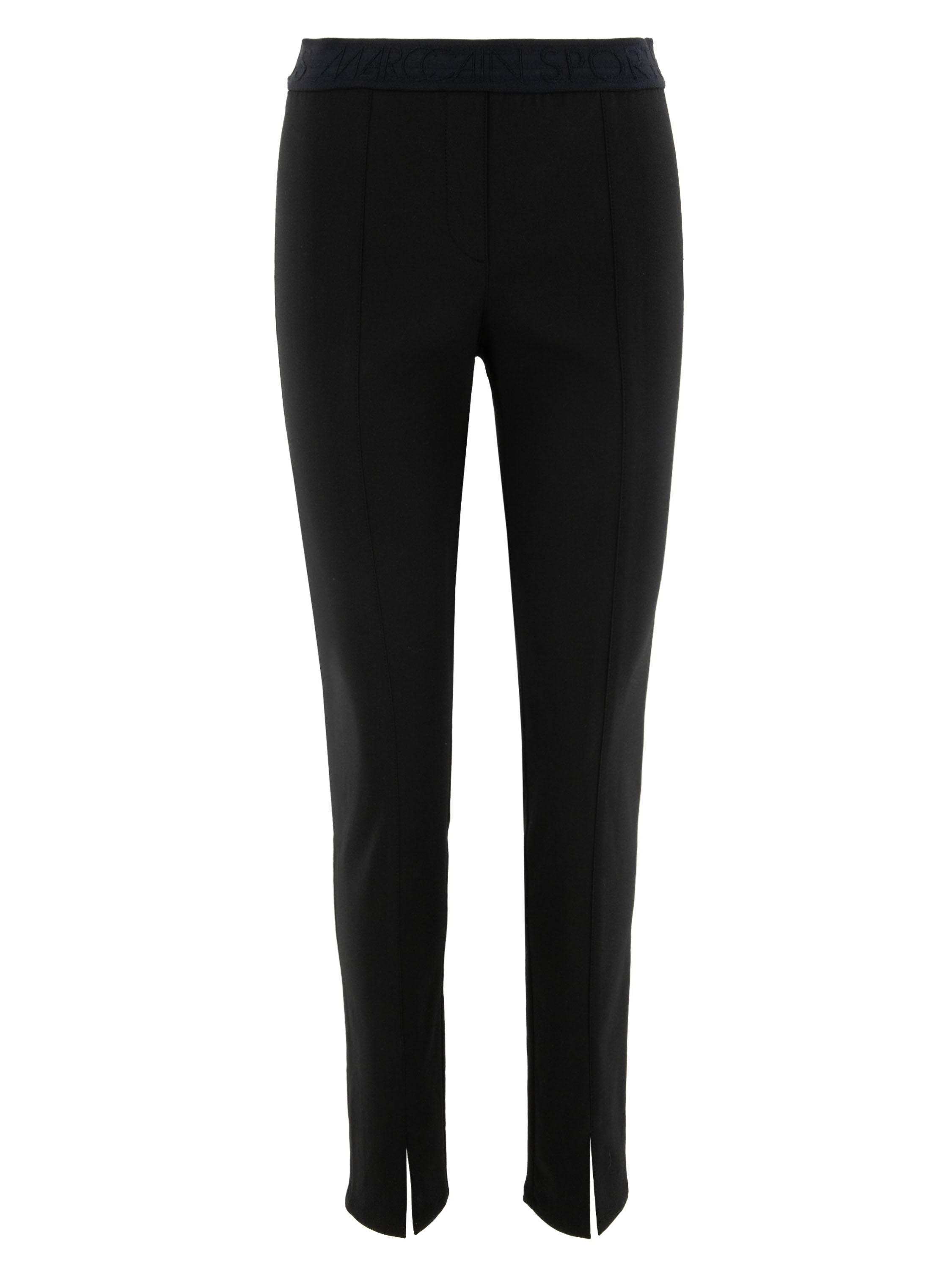 Trousers from Marc Cain in black. The waistband features a wide elastic band. A seam runs down the center of the legs. These trousers can be washed at 30 degrees.