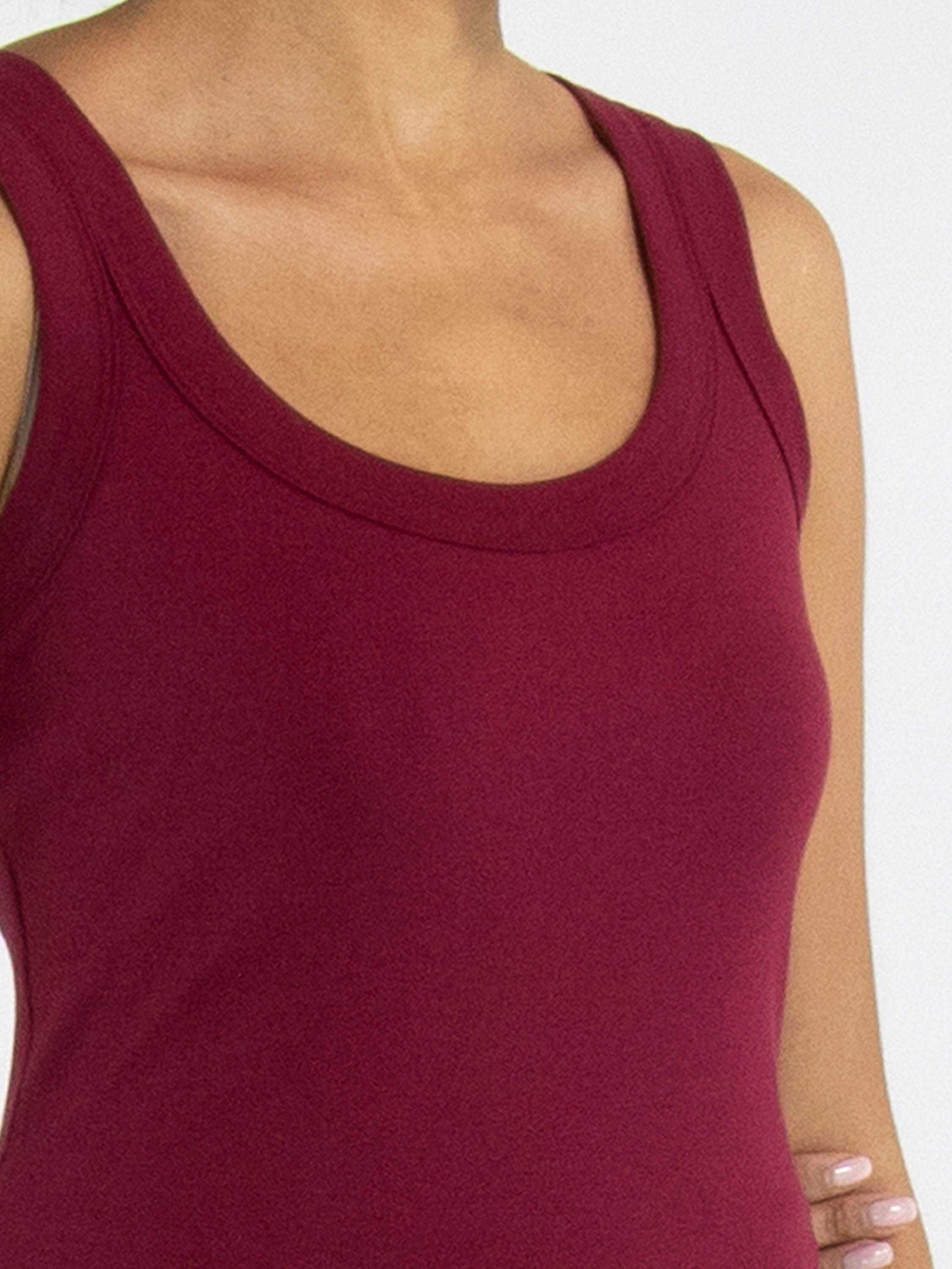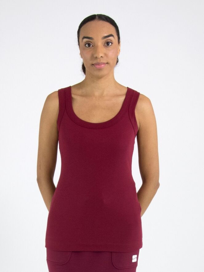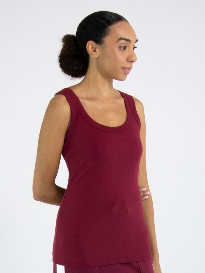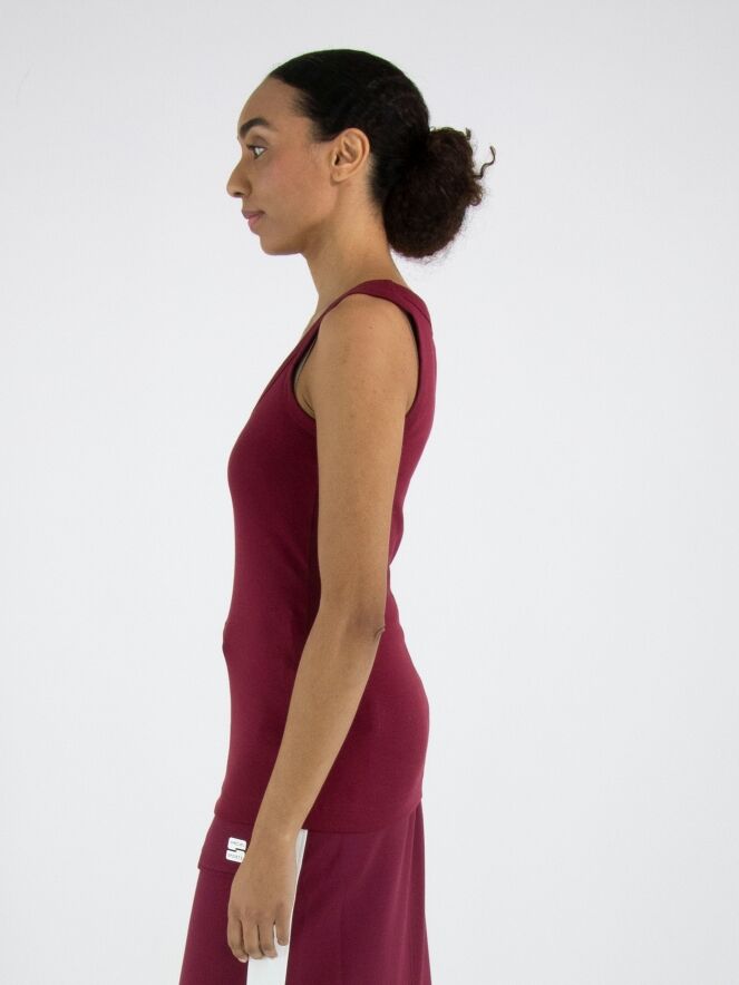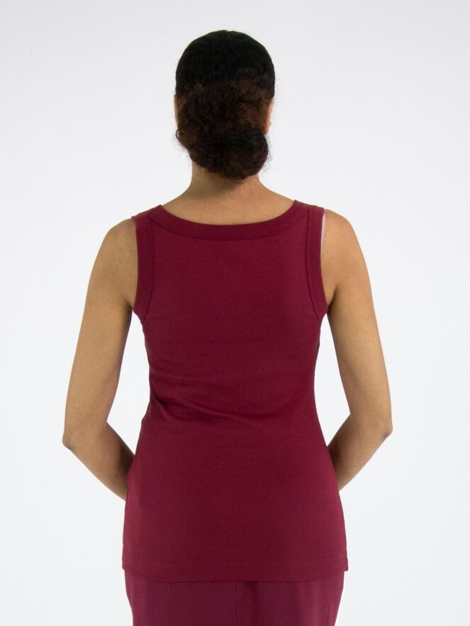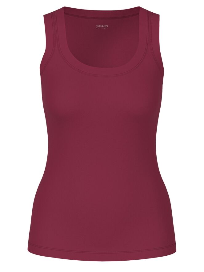A top from Marc Cain in burgundy. The top has a round neckline and can be washed at 30 degrees.