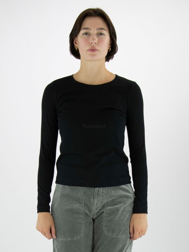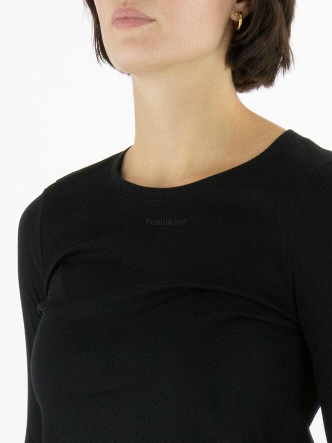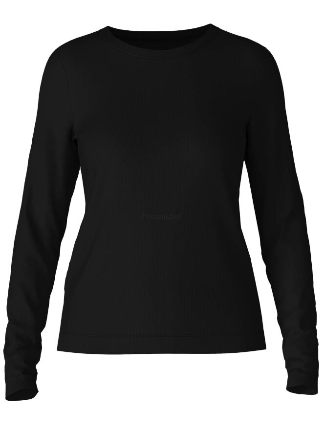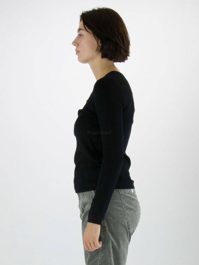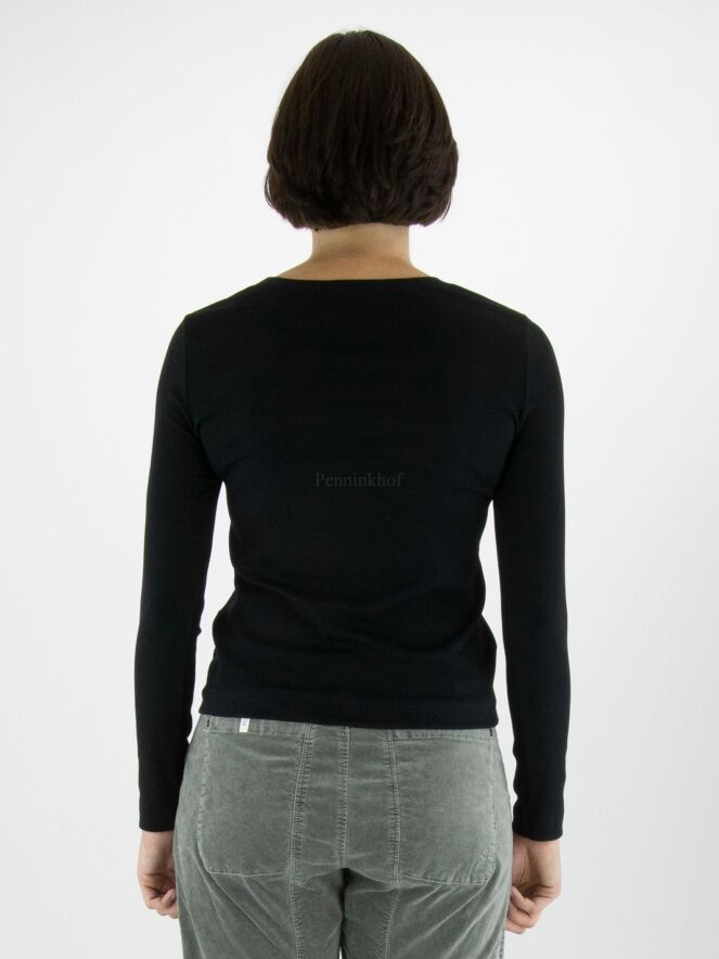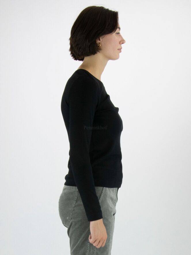 A fine ribbed shirt from Marc Cain in the colour black. The shirt has a round neckline and long sleeves. This shirt may be washed at 30 degrees.