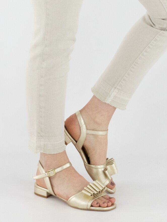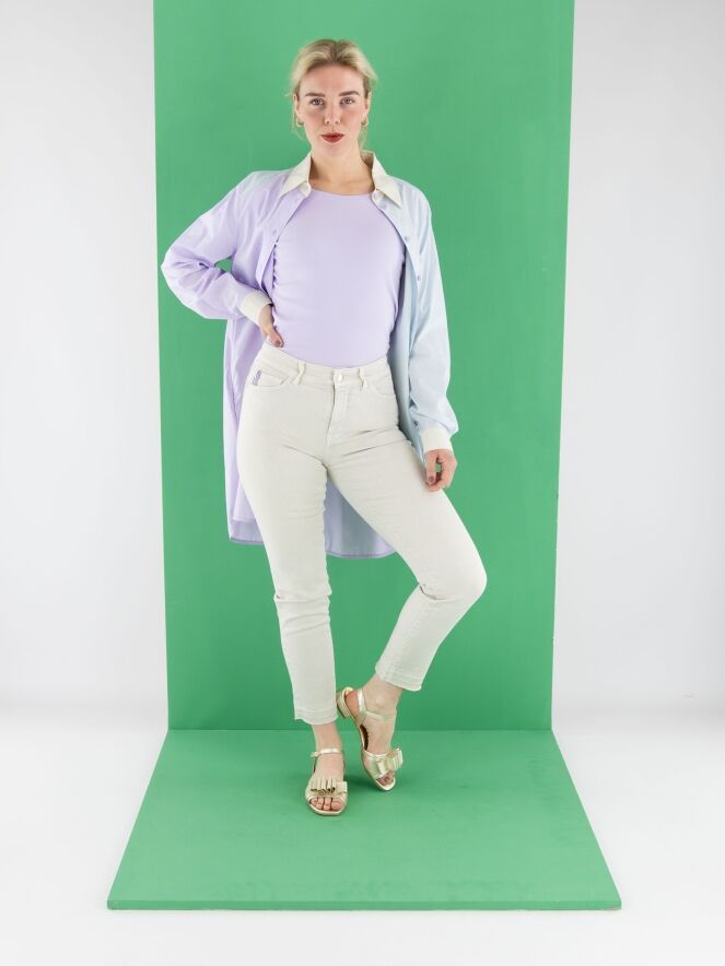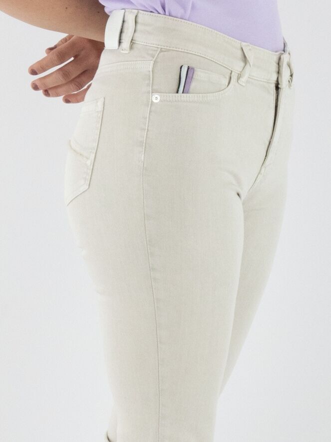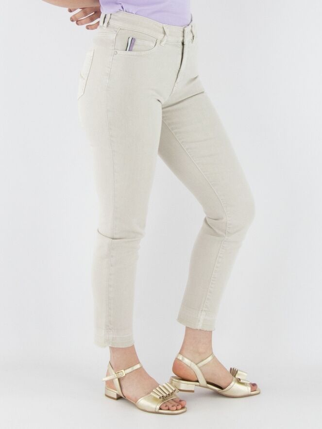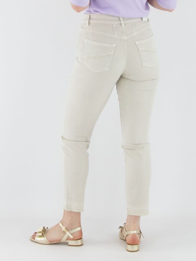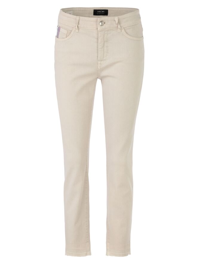 A pair of jeans from Marc Cain in sand color. The jeans feature a 5-pocket design, and the hems are subtly frayed. These jeans can be washed at 30 degrees.