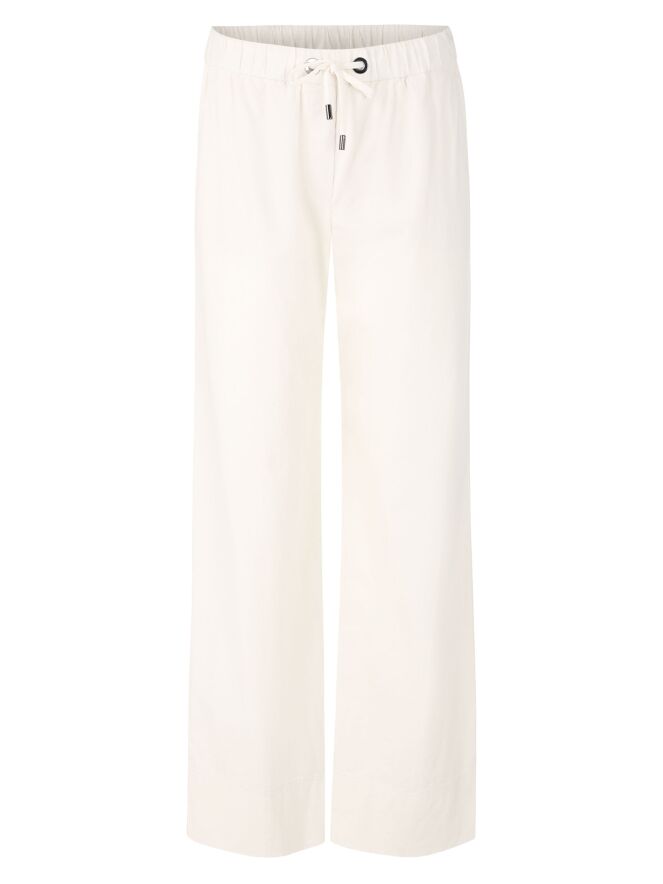 A baby corduroy trouser by Marc Cain in off-white. The elastic waistband features a drawstring in a tunnel design. The trousers have a straight cut and side pockets. This trouser can be washed at 30 degrees.