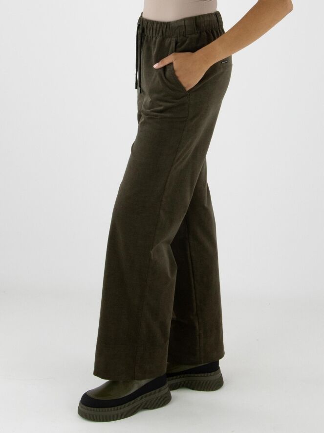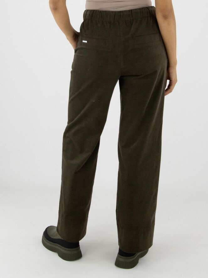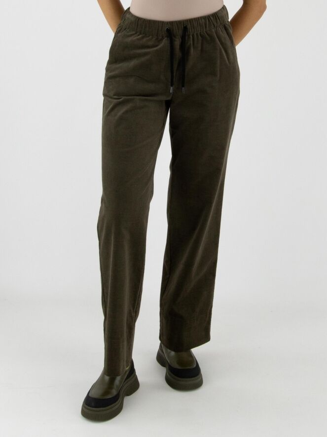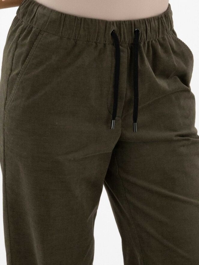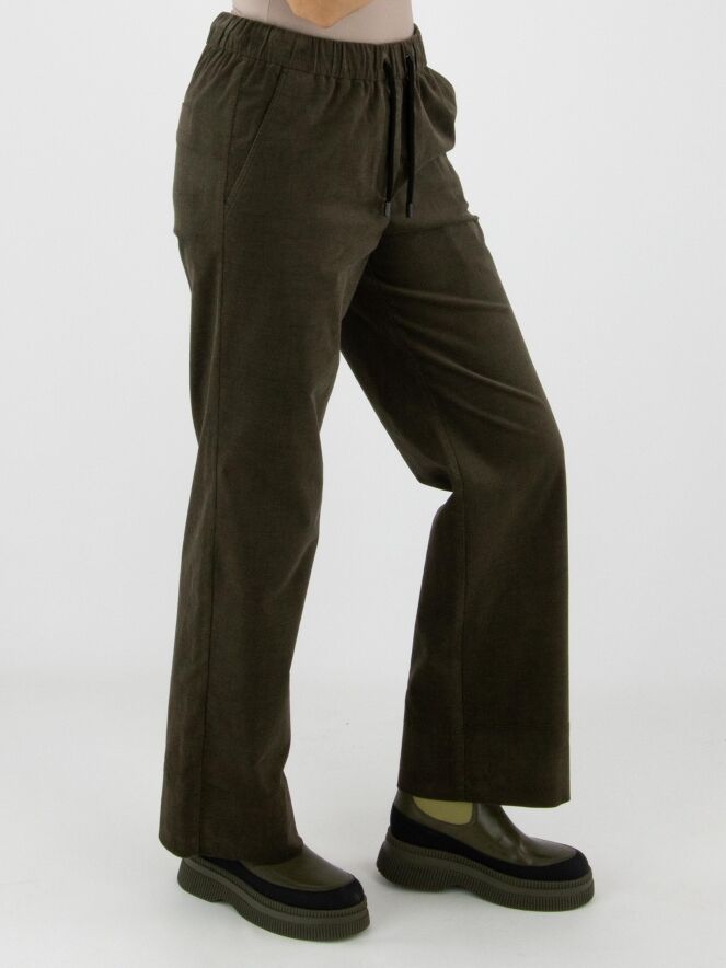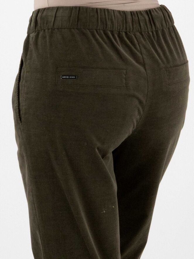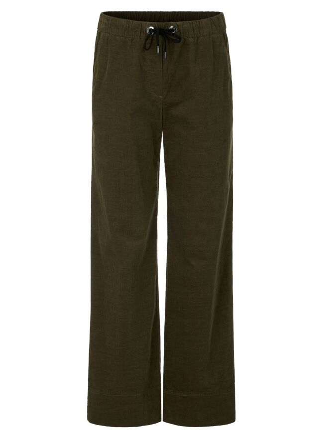 A baby corduroy trouser by Marc Cain in olive green. The elasticated waistband features a drawstring in a tunnel construction. The trousers have a straight cut and side pockets. They can be washed at 30 degrees.