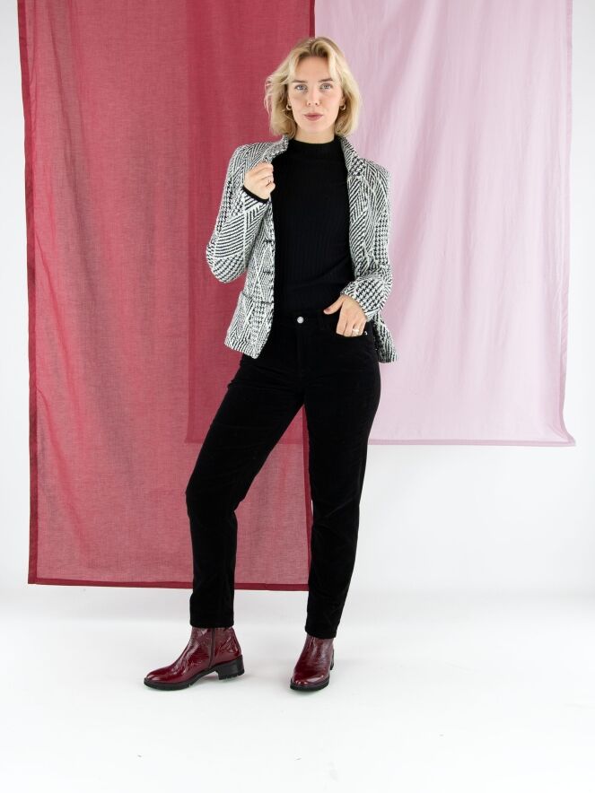 Velour trousers from Marc Cain in black. Designed in a classic 5-pocket style, these trousers can be washed at 30 degrees.