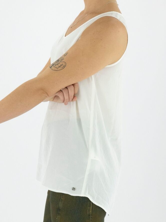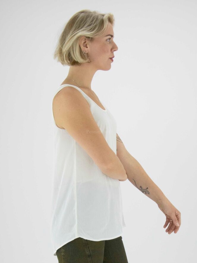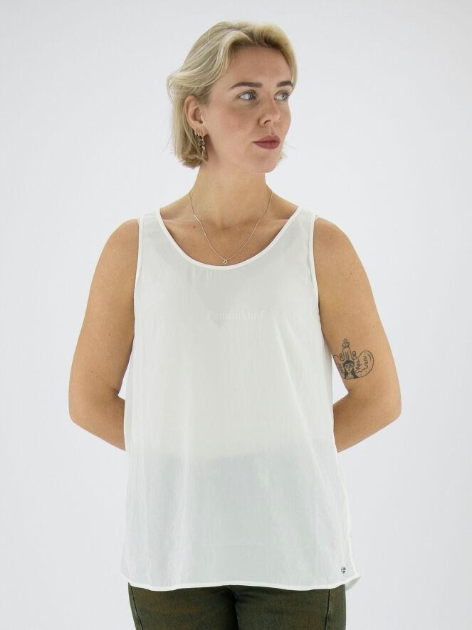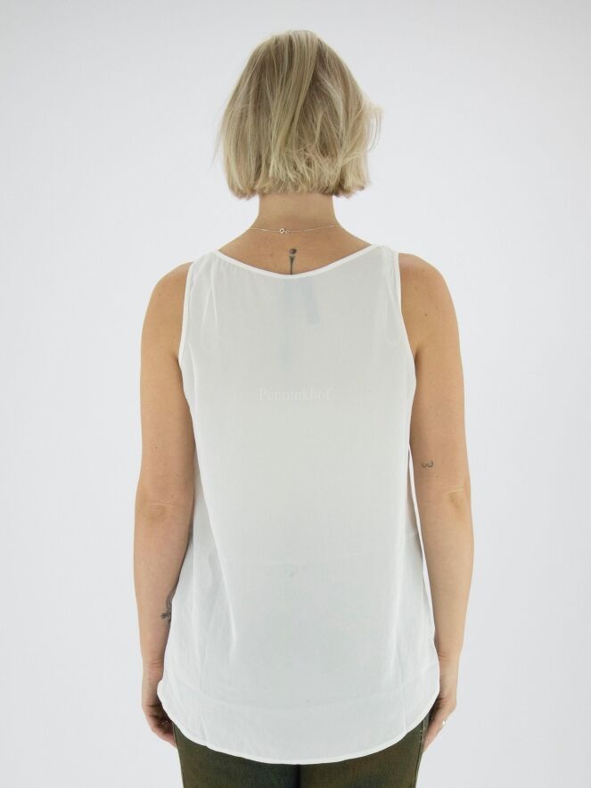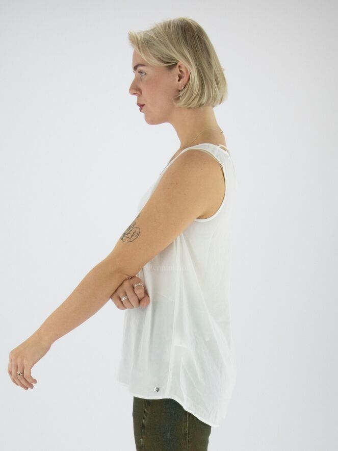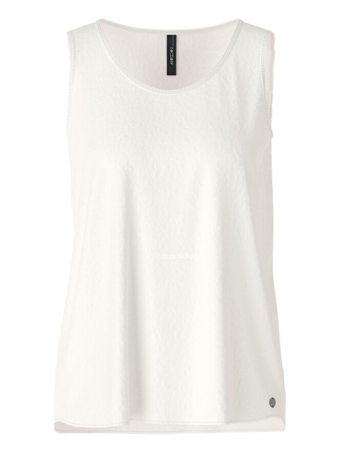 A Marc Cain top in a matt smooth fabric in the colour cream white. The top has a round neckline and may be washed at 30 degrees.