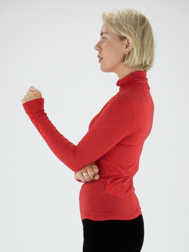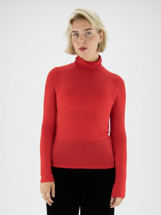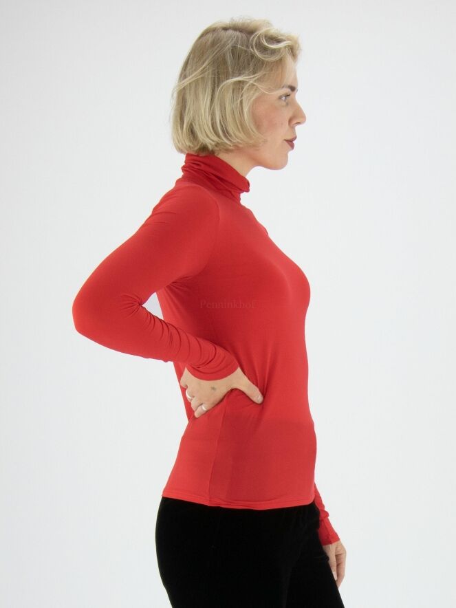 A tights shirt from Marc Cain in red. The shirt has a turtleneck and long sleeves and may be washed at 30 degrees.