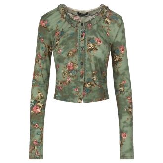 A shirt from Marc Cain in a light transparent velvet fabric in dark green. The stretch velour has a metallic sheen. The shirt has a turtleneck and long sleeves and can be washed at 30 degrees.