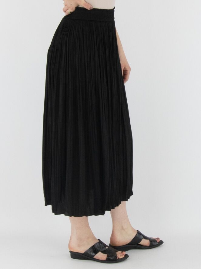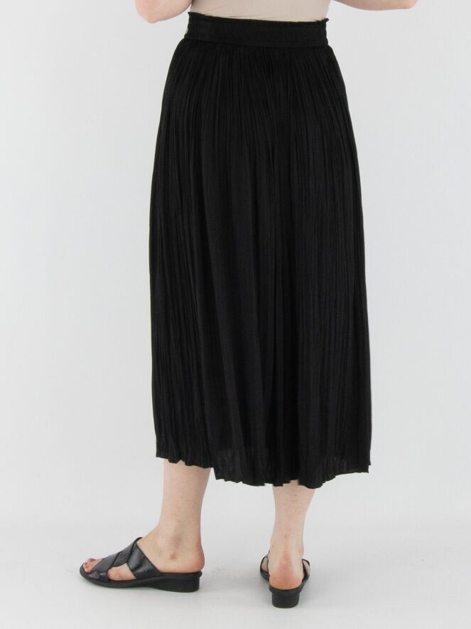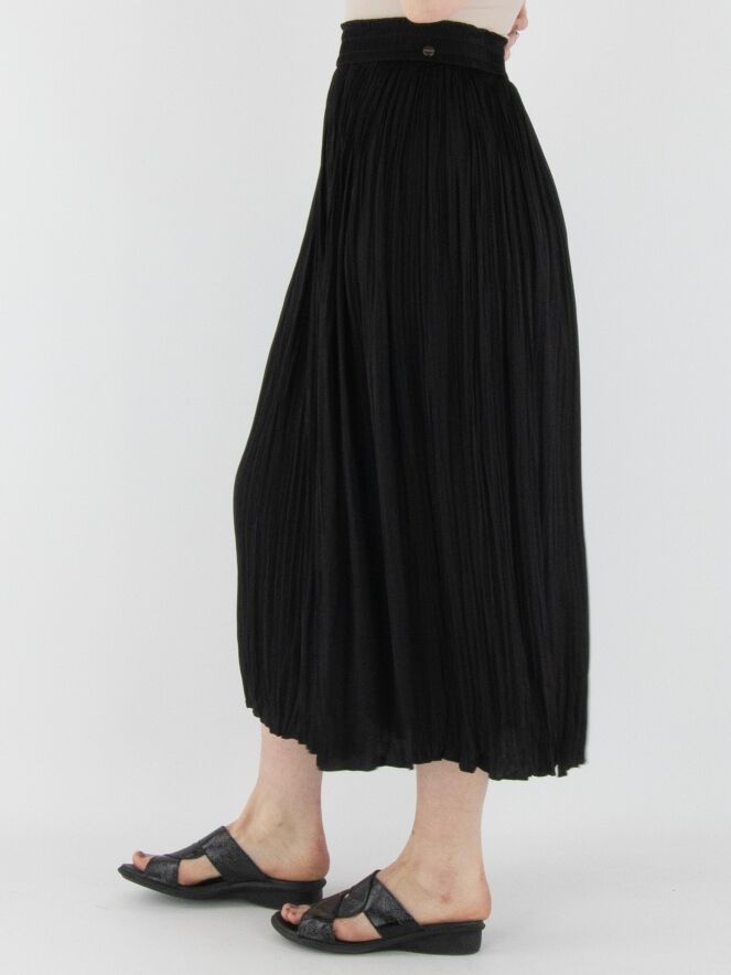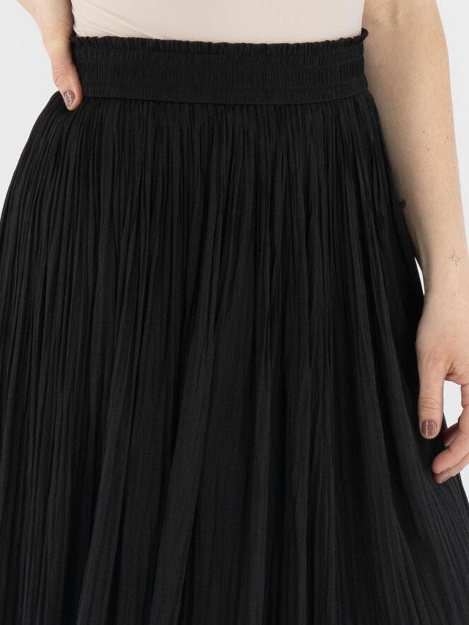 A crinkled pleated skirt from Marc Cain in black. The waistband features a finely pleated elastic band with a drawstring in a tunnel finish. The skirt is unlined and can be washed at 30 degrees.