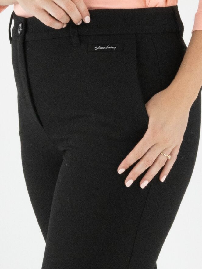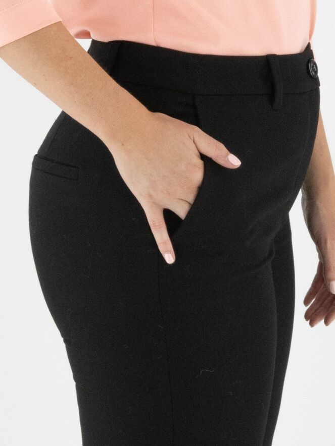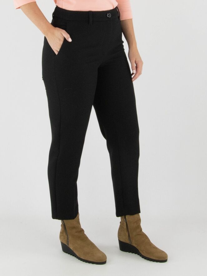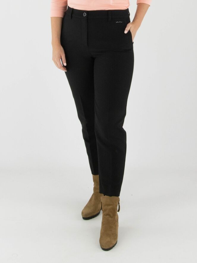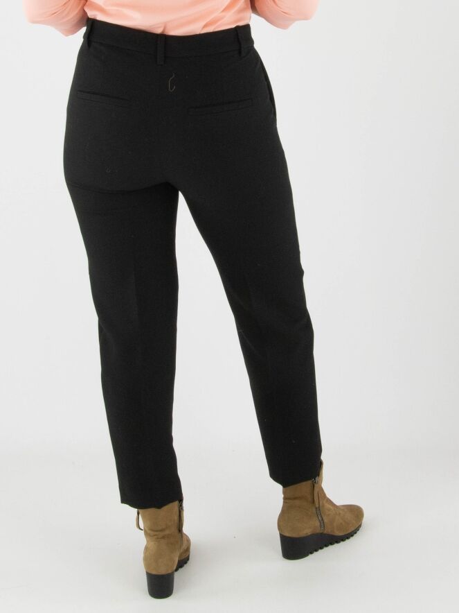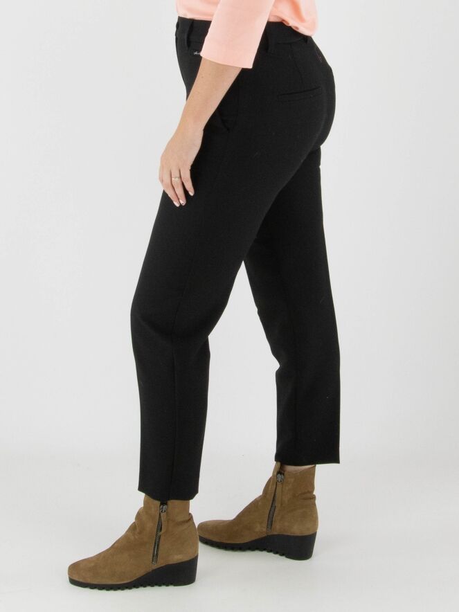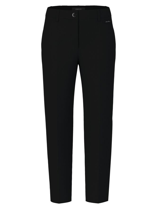 Trousers by Marc Cain in black. A pressed crease runs down the front center of each leg. The trousers feature side pockets and can be washed at 30 degrees.