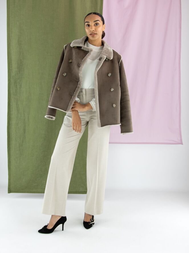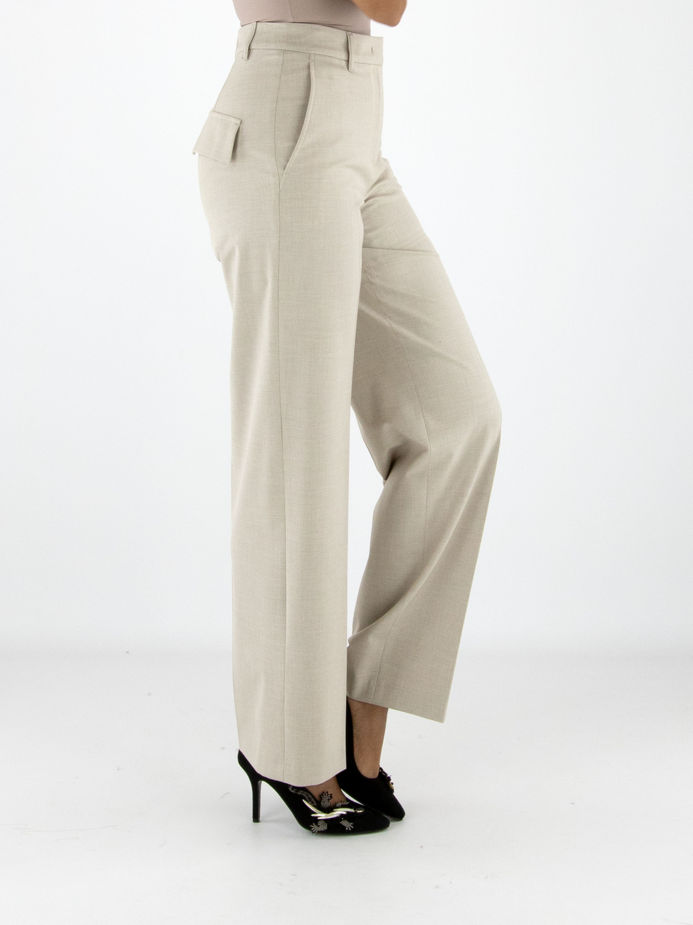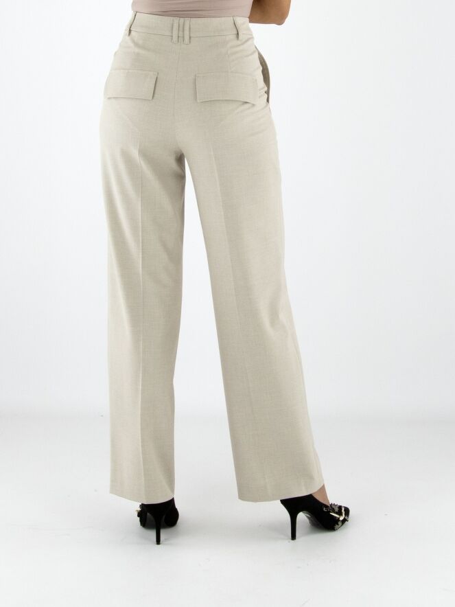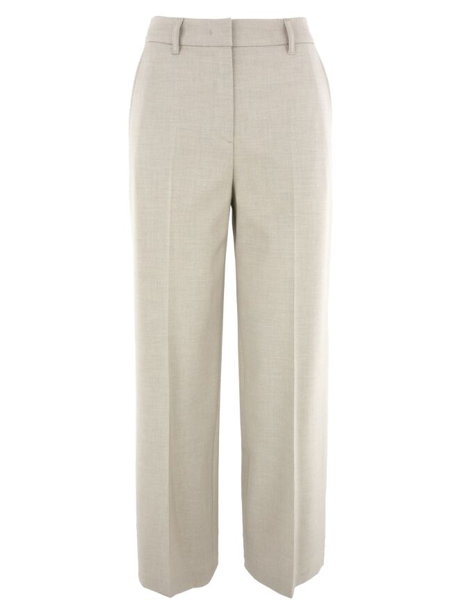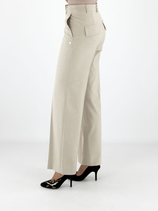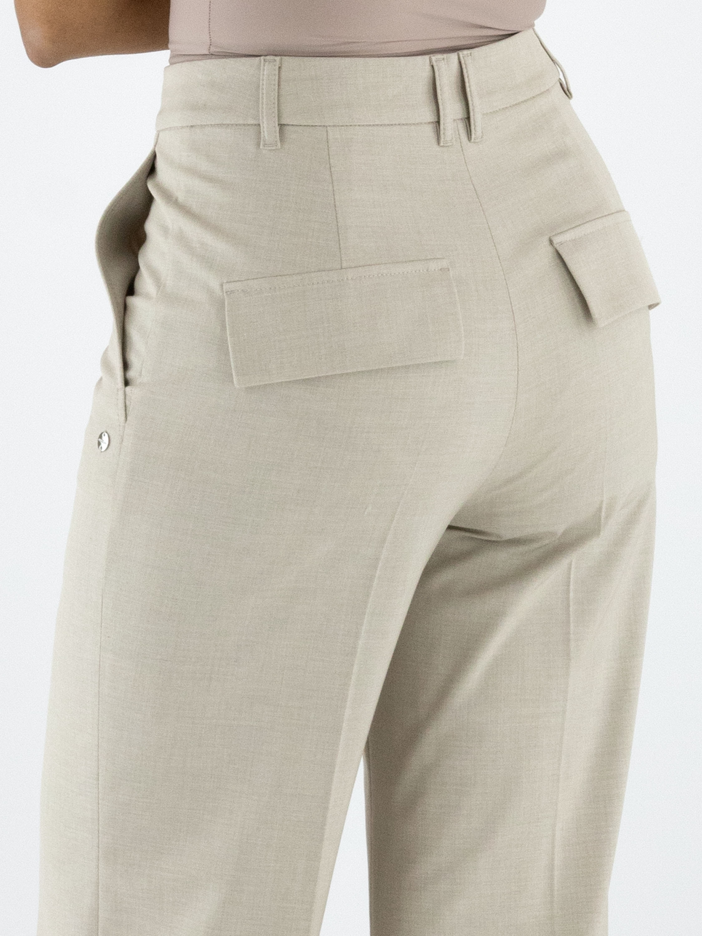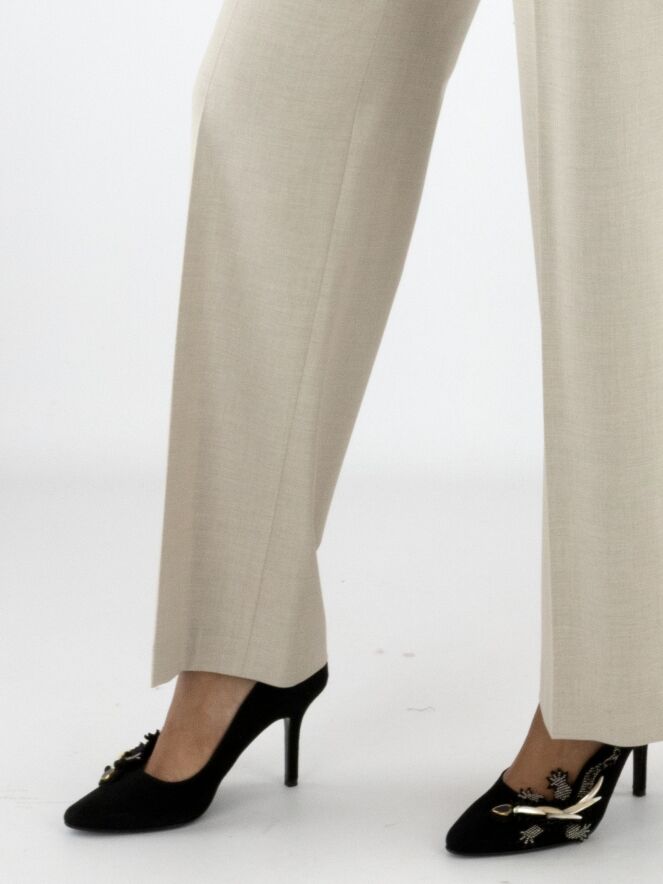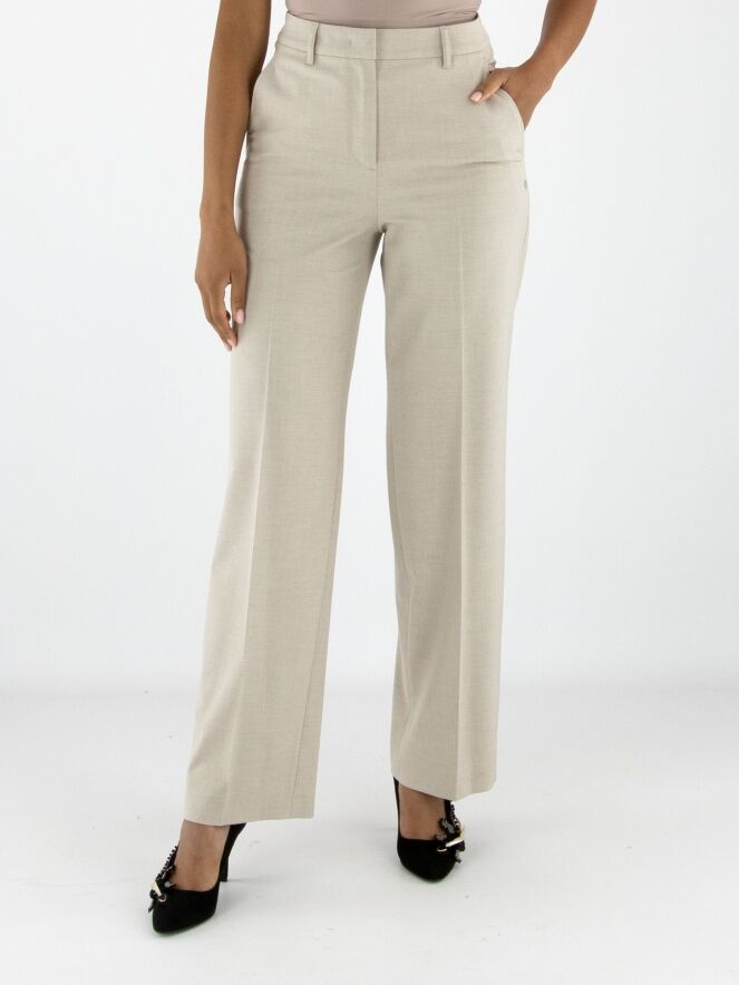 A straight-cut trouser by Marc Cain in an elegant beige shade. The pressed crease along the center of the legs adds sophistication to the design. Featuring side pockets, this trouser can be washed at 30 degrees.