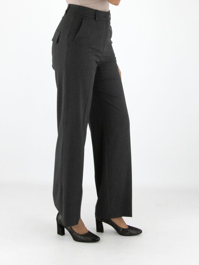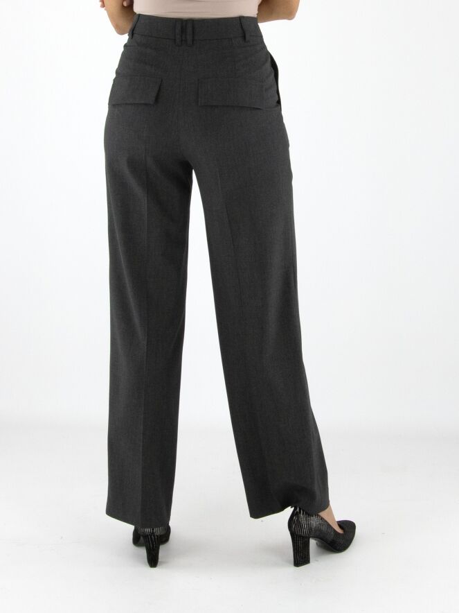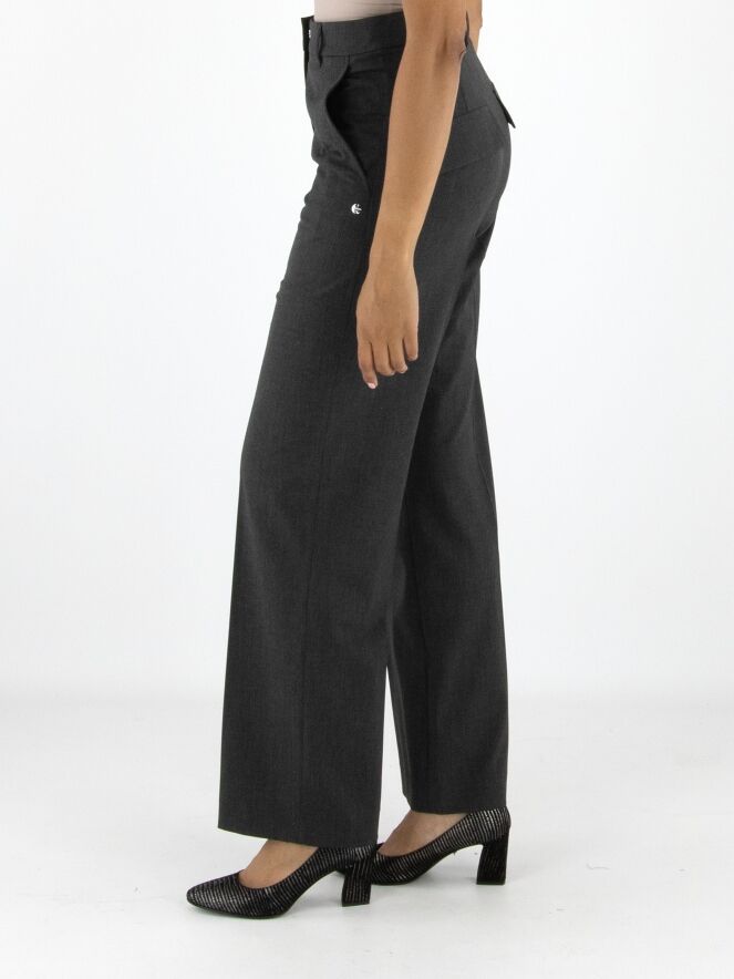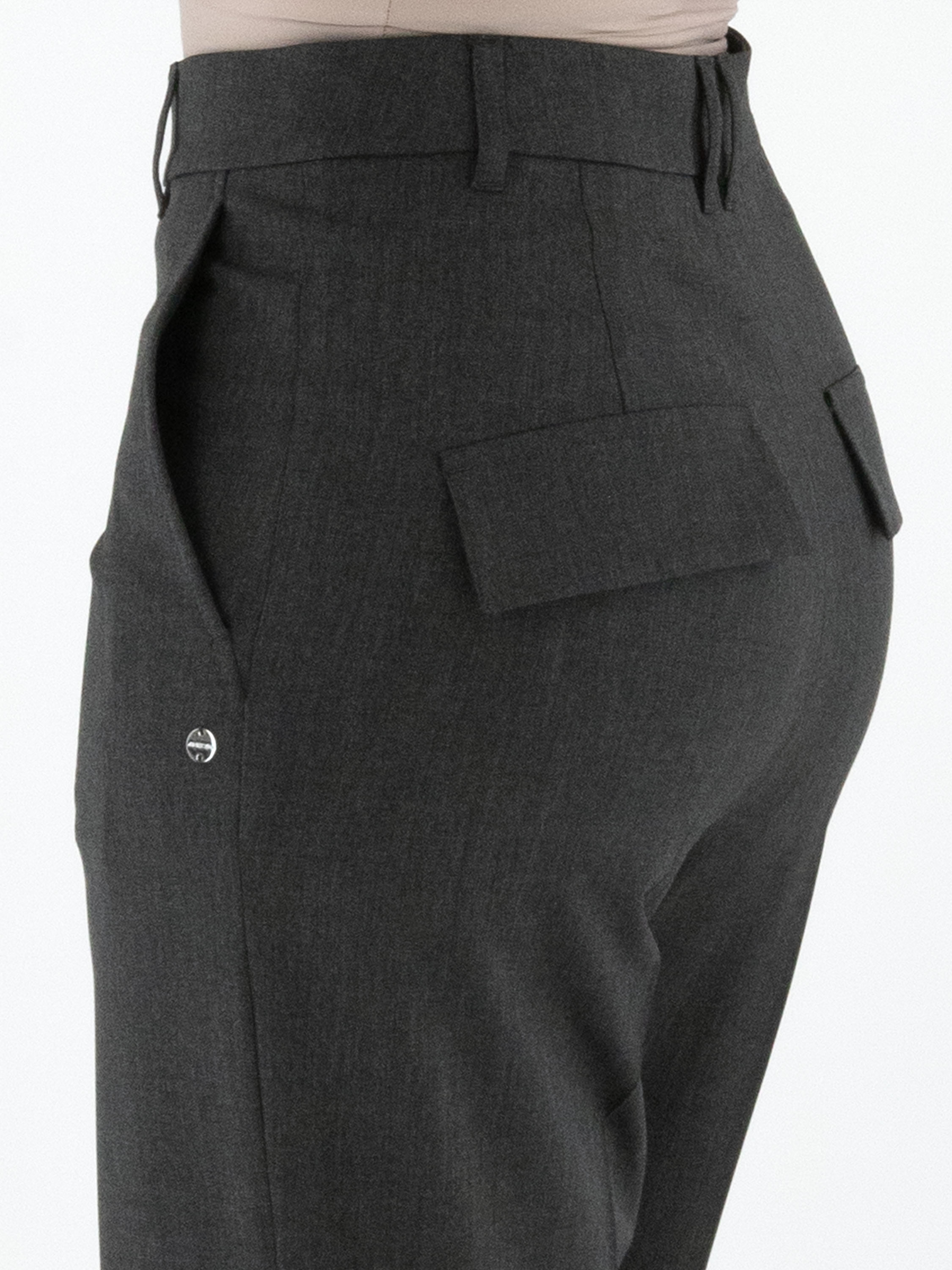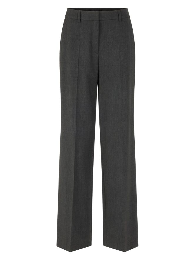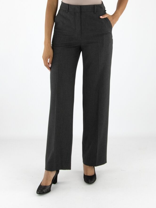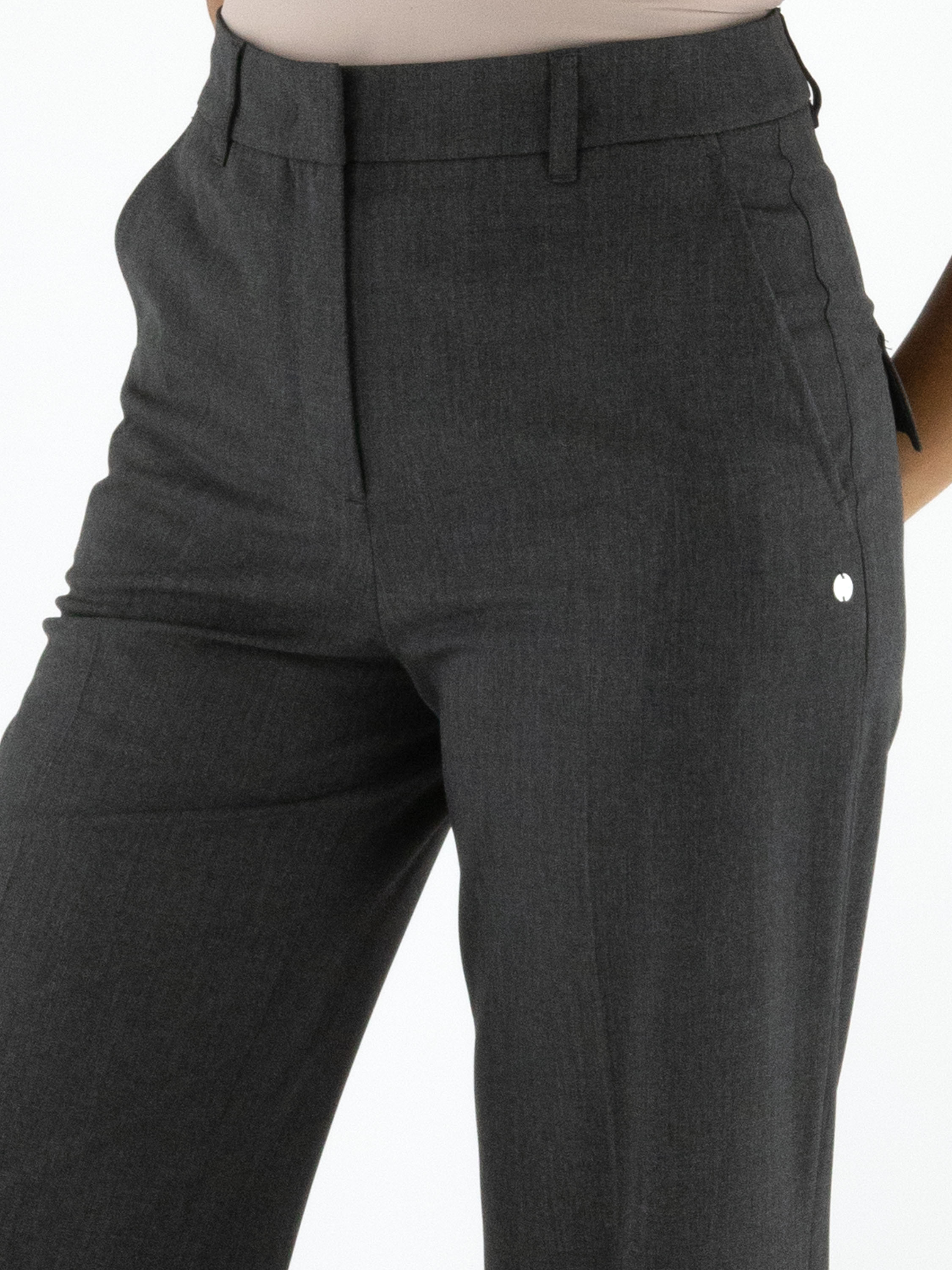 Straight-cut trousers by Marc Cain in a refined grey shade. Featuring a pressed crease down the front of the legs, this design offers a timeless, elegant silhouette. The trousers are finished with side pockets and can be washed at 30 degrees.
