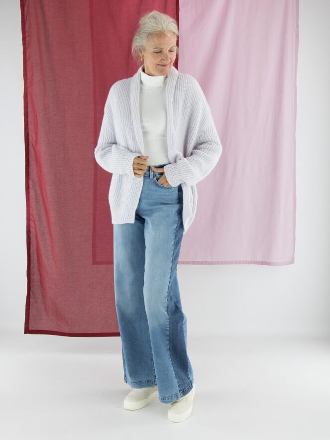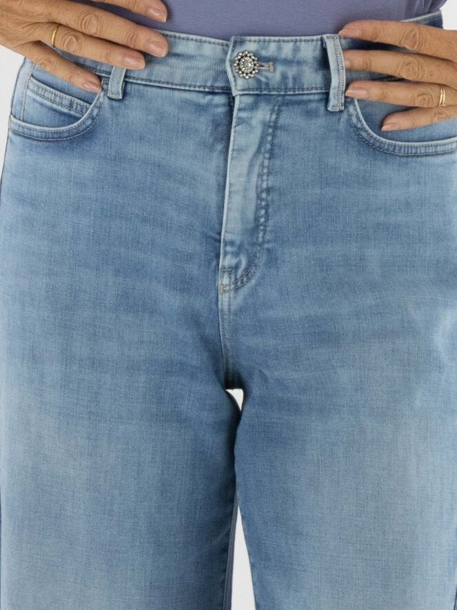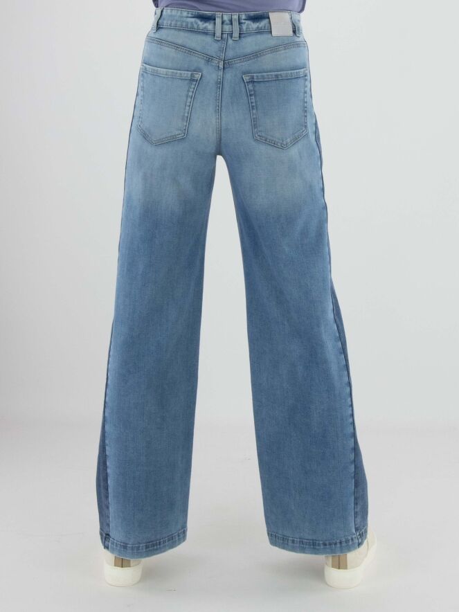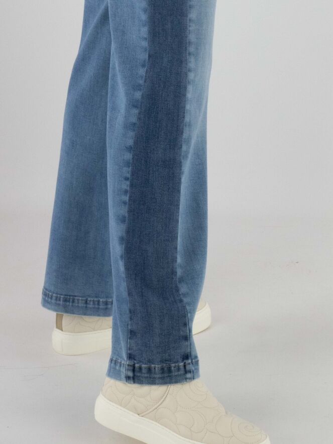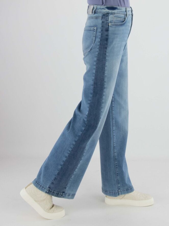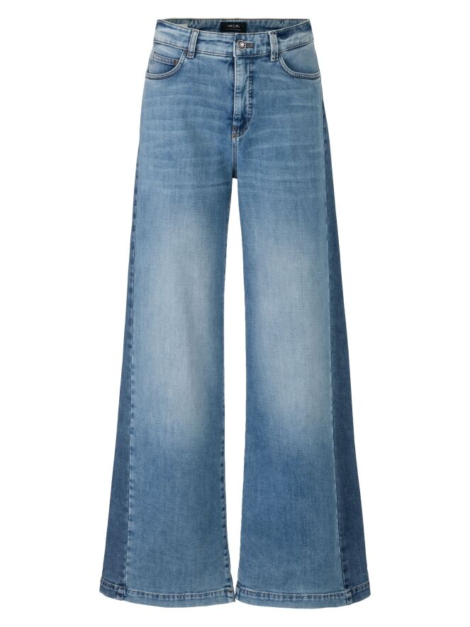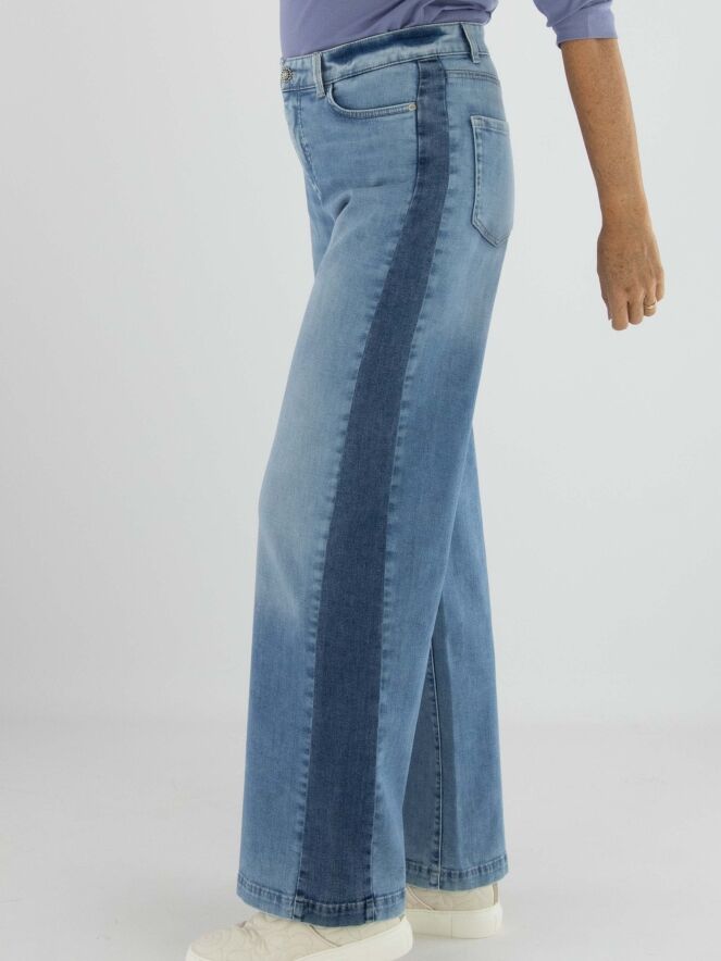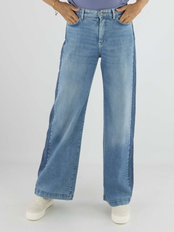 A wide-leg jeans by Marc Cain in a basic denim shade. This 5-pocket model features side panels in a darker denim tone. These jeans can be washed at 30 degrees.