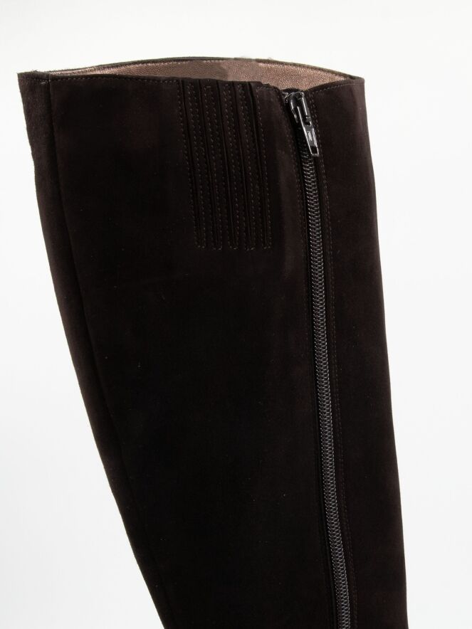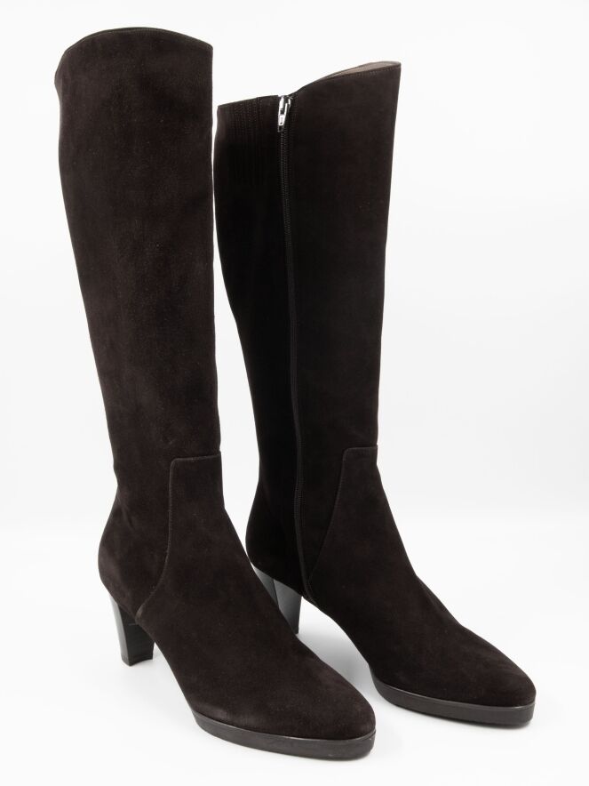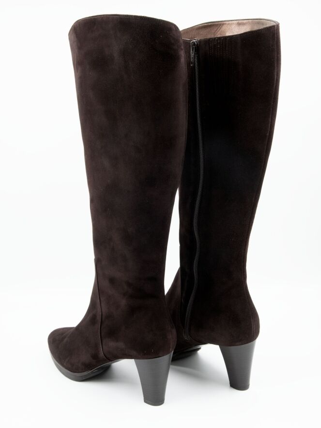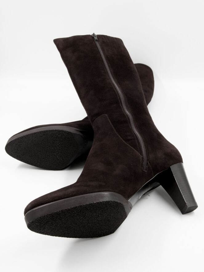 A boot of the brand Mauro Teci in the color mocha brown. At the upper end of the shaft is an incision with a hidden elastics stuk.De zipper on the inside of the shaft over the entire length of the shaft. The height of the shaft is 41 cm, and the perimeter is 39 cm.