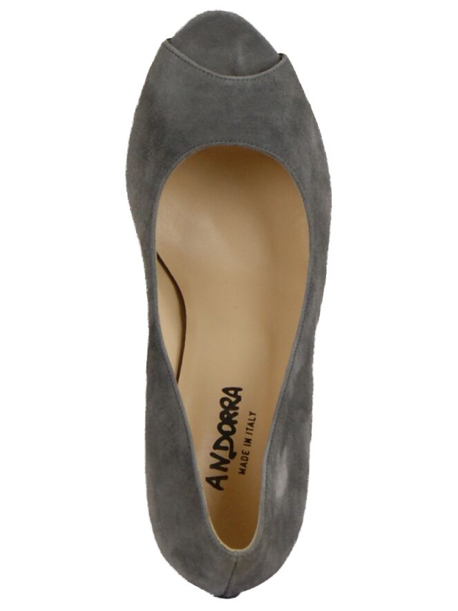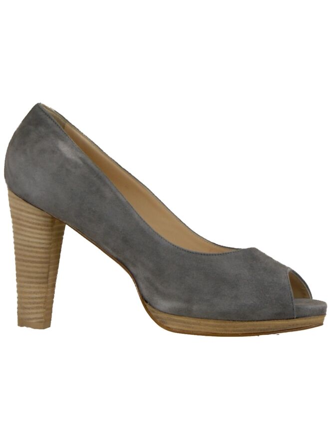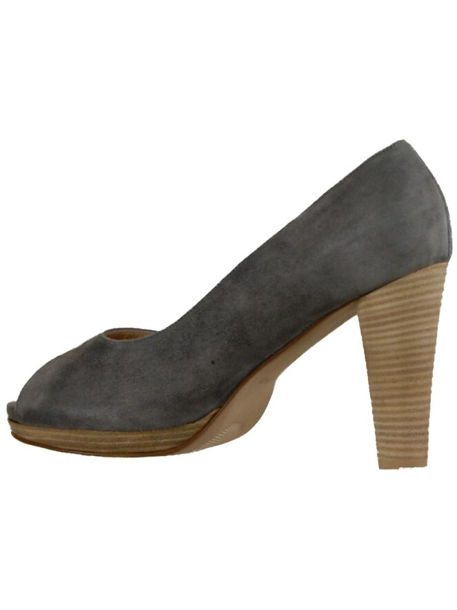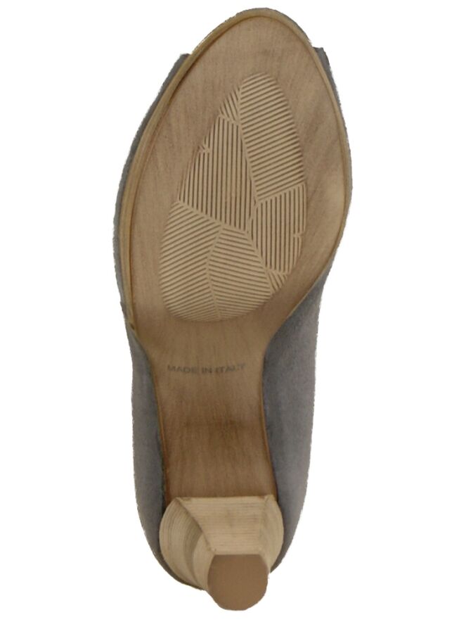 A pump of the brand Mauro Teci in the color grey with a open toe on a platform sole. The pump is on the inside with leather lined.