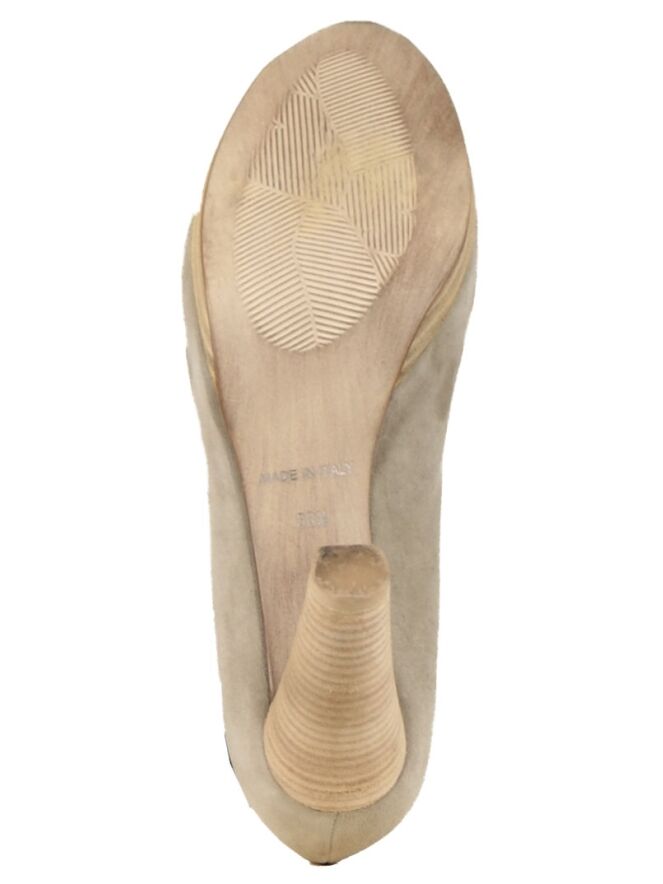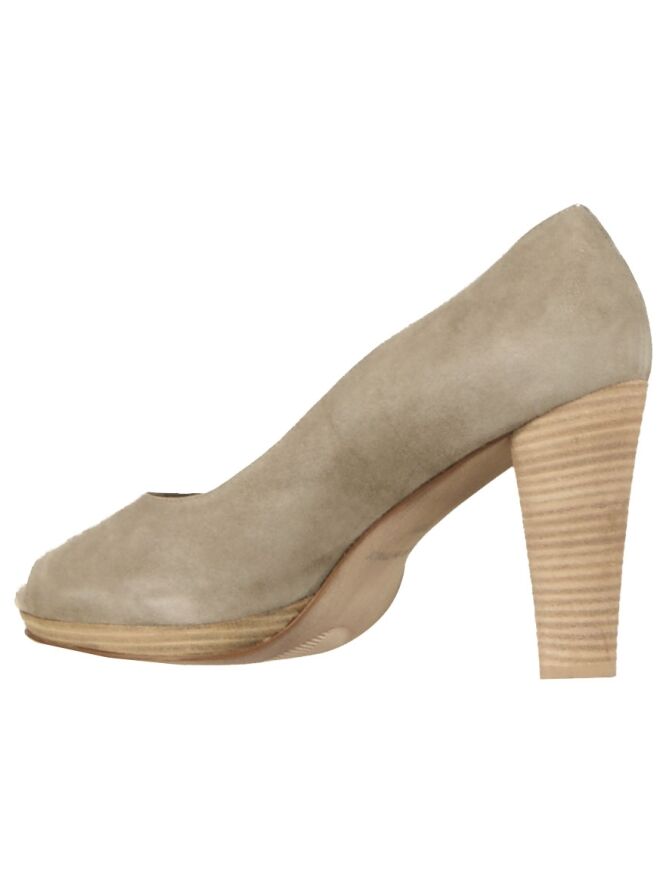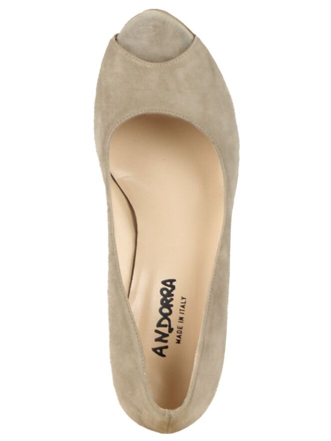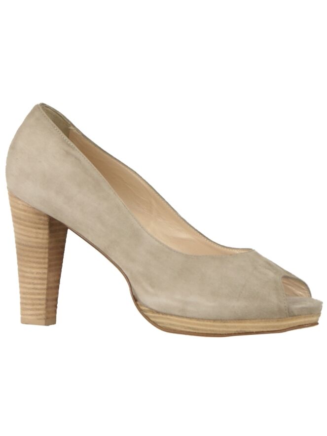 A pump of the brand Mauro Teci in the color taupe with a open toe on a platform sole. The pump is on the inside with leather lined.