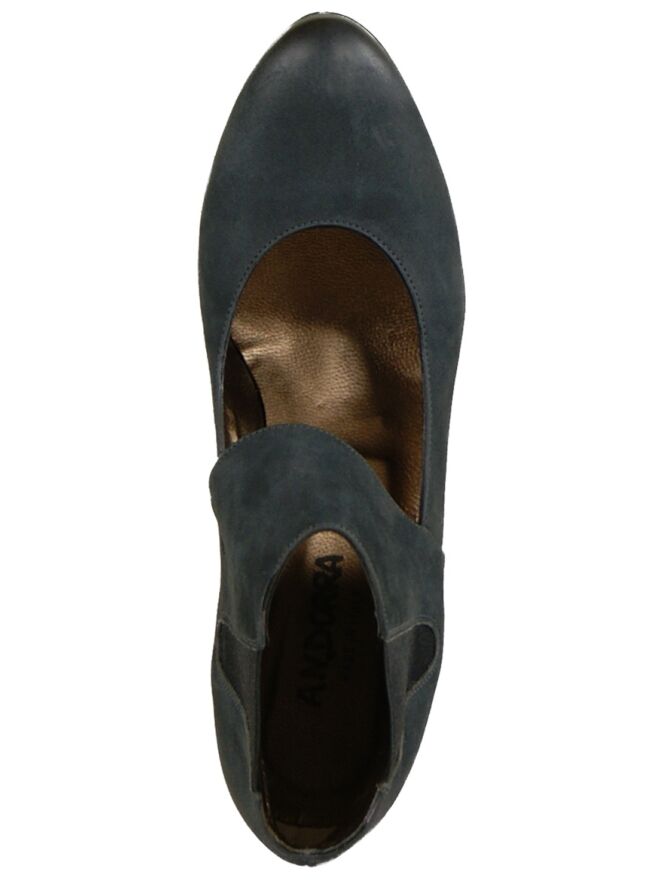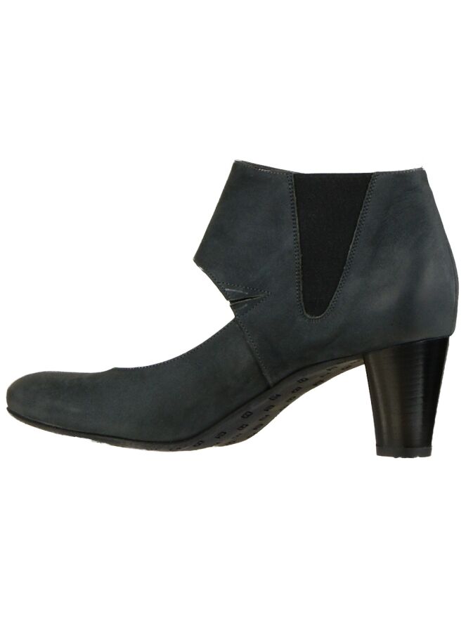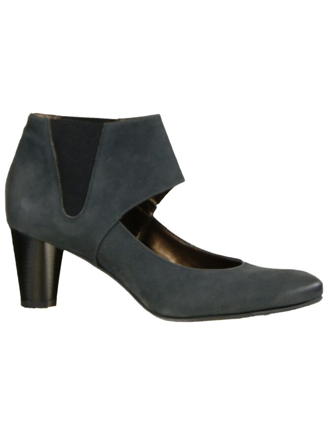 A pump of the brand Mauro Teci in the colour anthracite grey. The pump is closed around the ankle and has an elastic fabric used on both sides. The pump is on the inside with leather lined.