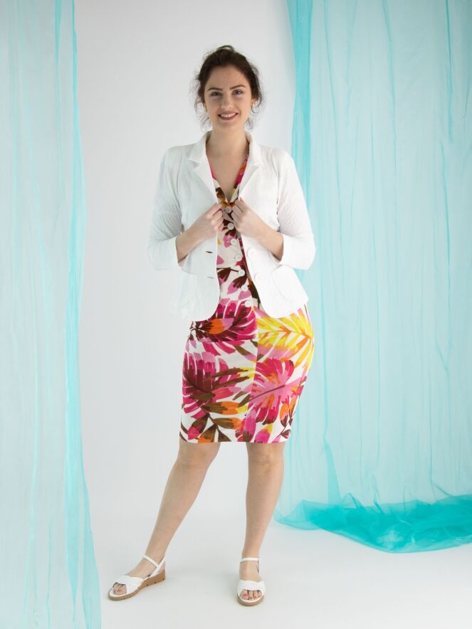 ML Collections is the brand of the Dutch Designer Marjans van Weeghel. Each season she brings especially blazers in luxury and light fabrics of high quality with often original prints. Marjans van Weeghel works since long with some items that are known because of the good fits. Every season we have an extensive choice from her collection and we carry all available sizes.