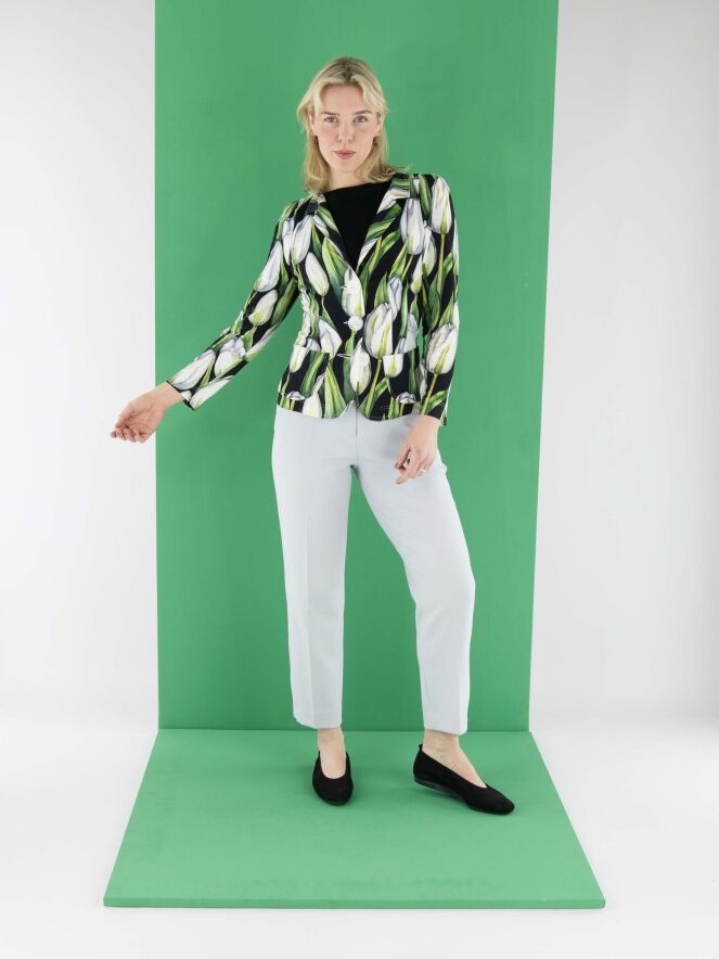 ML Collections is the brand of the Dutch Designer Marjans van Weeghel. Each season she brings especially blazers in luxury and light fabrics of high quality with often original prints. Marjans van Weeghel works since long with some items that are known because of the good fits. Every season we have an extensive choice from her collection and we carry all available sizes.