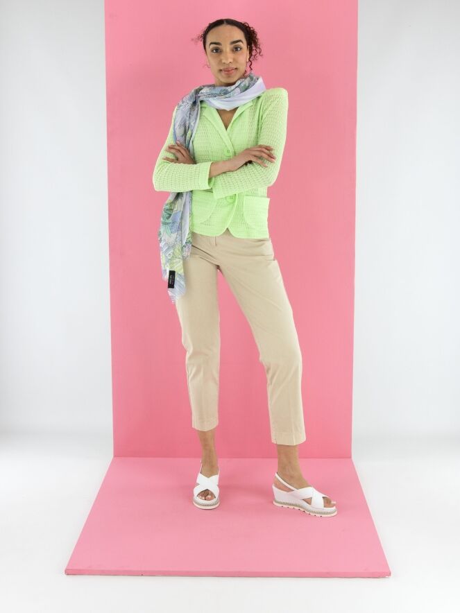 ML Collections is the brand of the Dutch Designer Marjans van Weeghel. Each season she brings especially blazers in luxury and light fabrics of high quality with often original prints. Marjans van Weeghel works since long with some items that are known because of the good fits. Every season we have an extensive choice from her collection and we carry all available sizes.