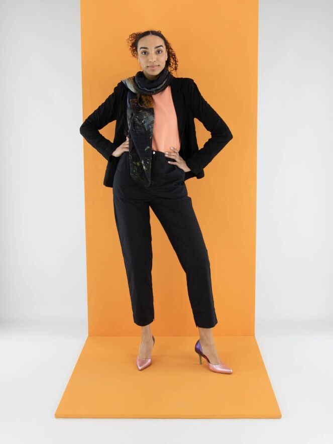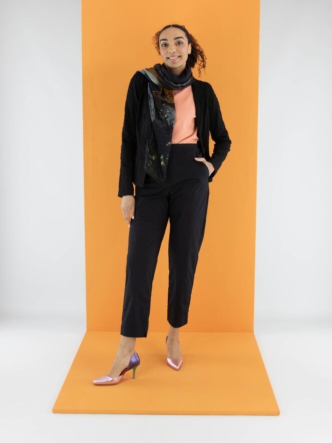 ML Collections is the brand of the Dutch Designer Marjans van Weeghel. Each season she brings especially blazers in luxury and light fabrics of high quality with often original prints. Marjans van Weeghel works since long with some items that are known because of the good fits. Every season we have an extensive choice from her collection and we carry all available sizes.