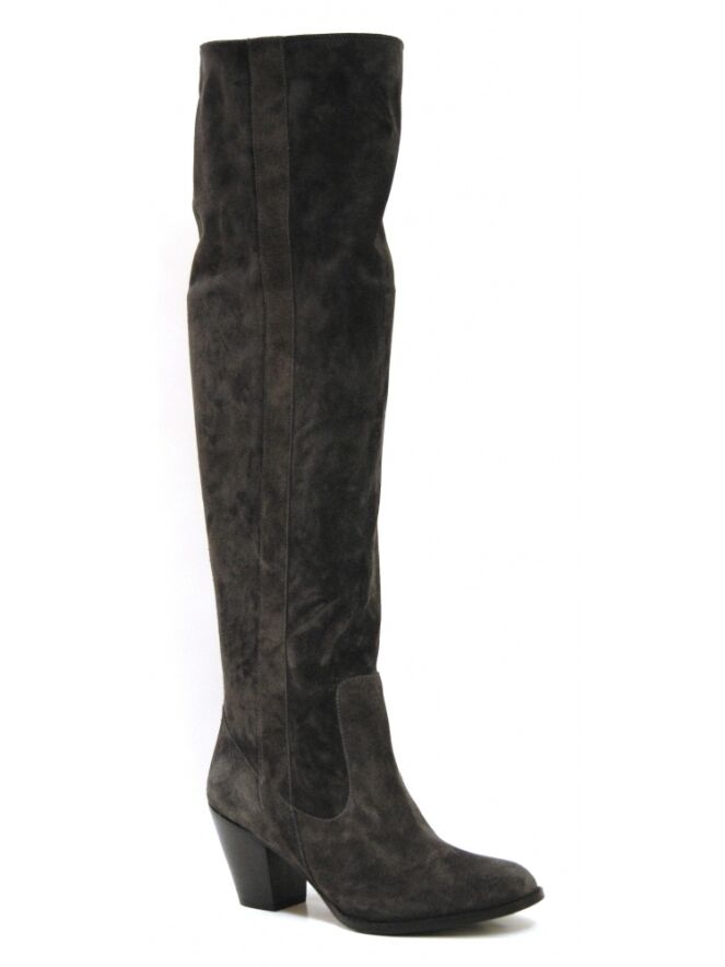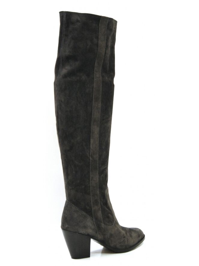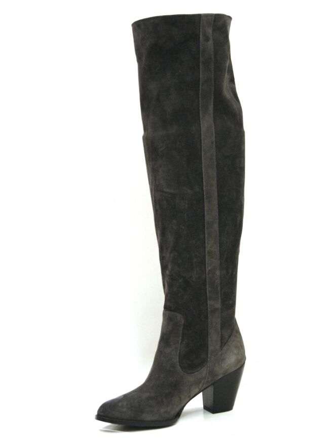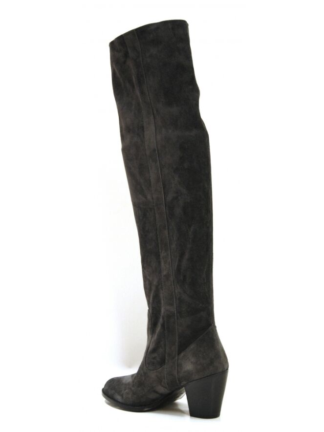 A boot of the brand Moonflower in the color antracite. The shaft is soft and sinks down a little. Along both sides of the shaft is a piping with a stitched seam in the shaft is not a zipper. The height of the shaft is 49 cm, and the circumference is 38 cm.