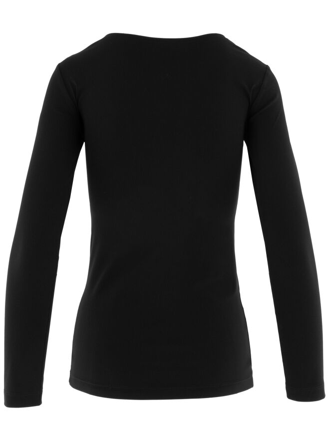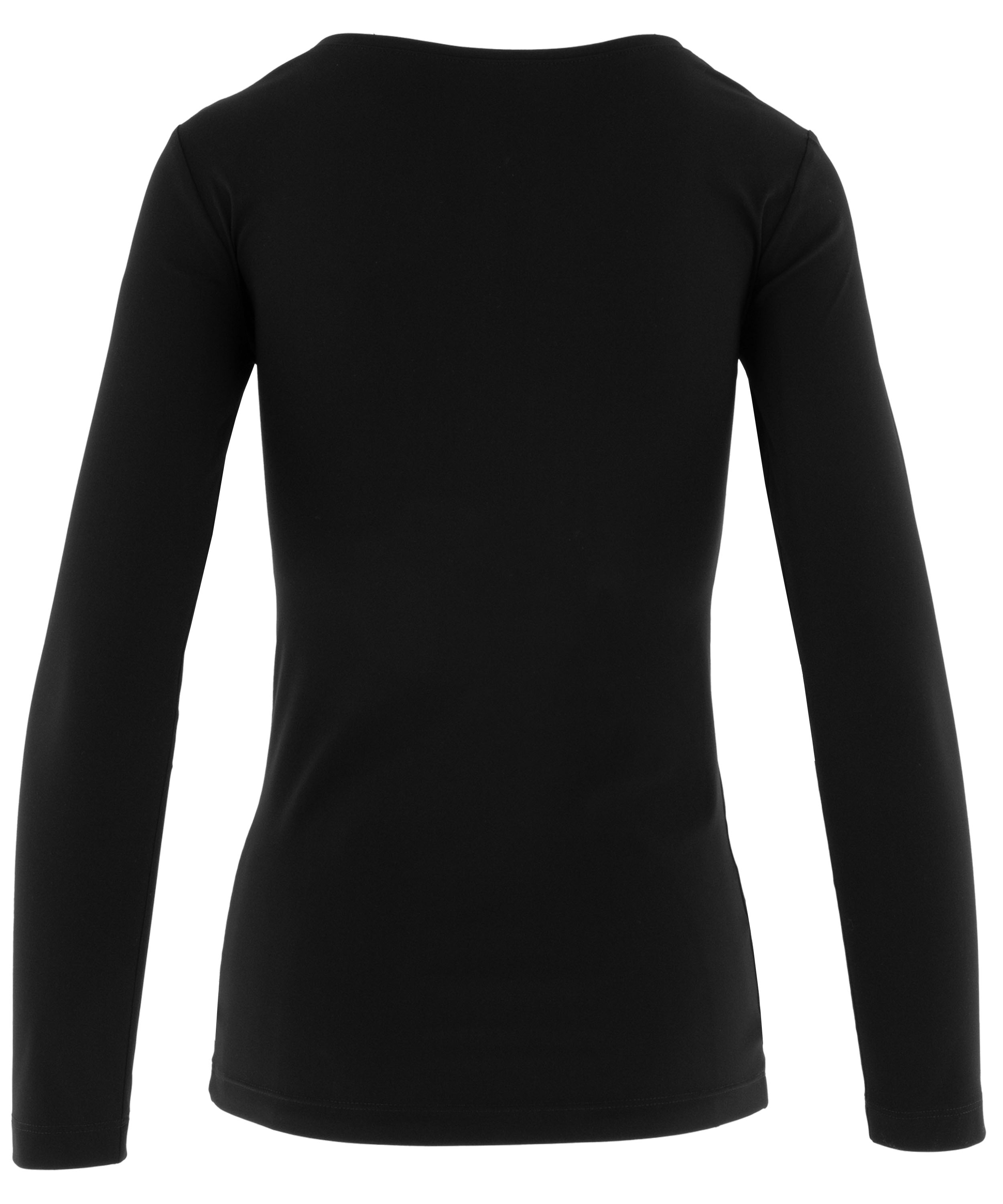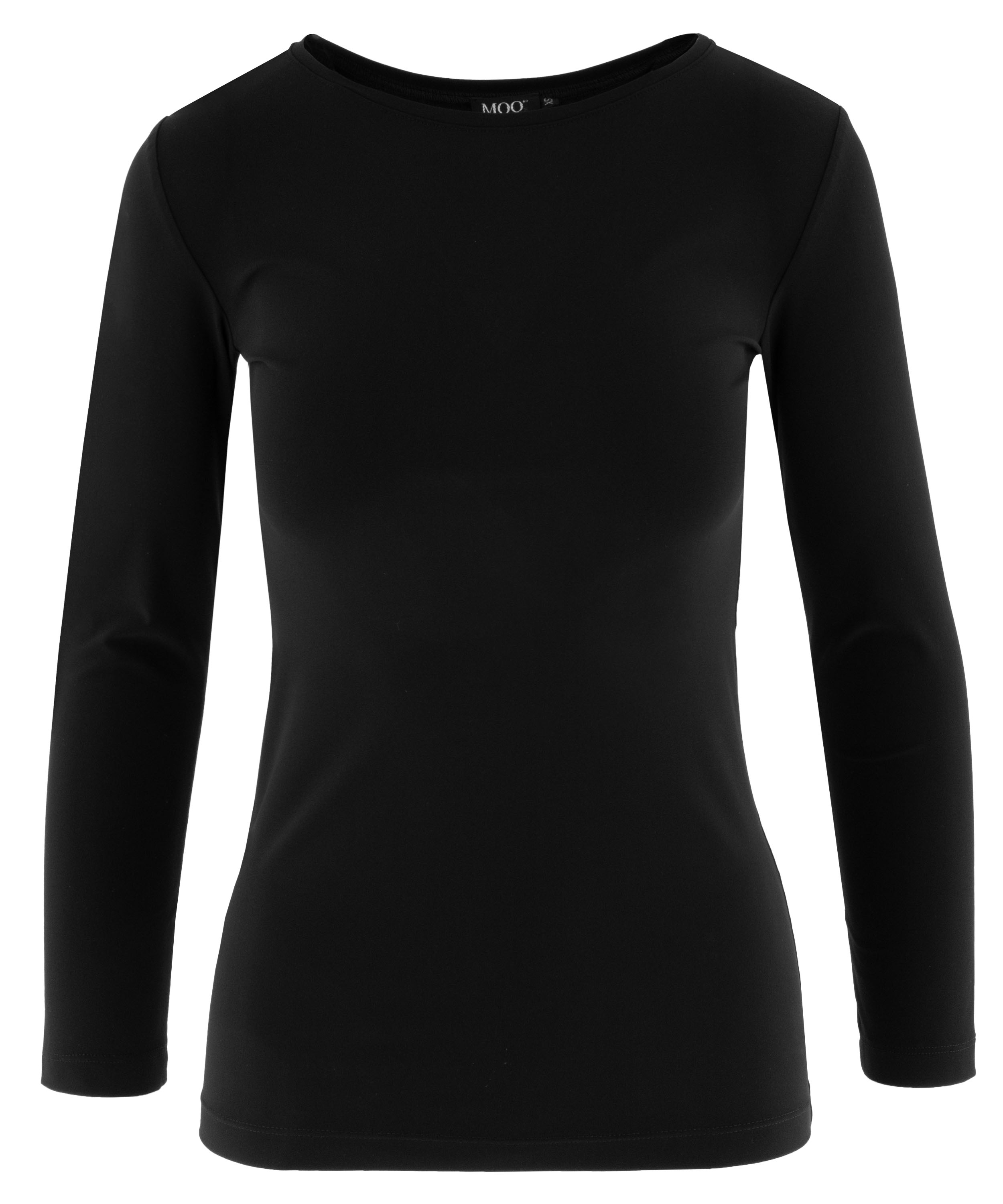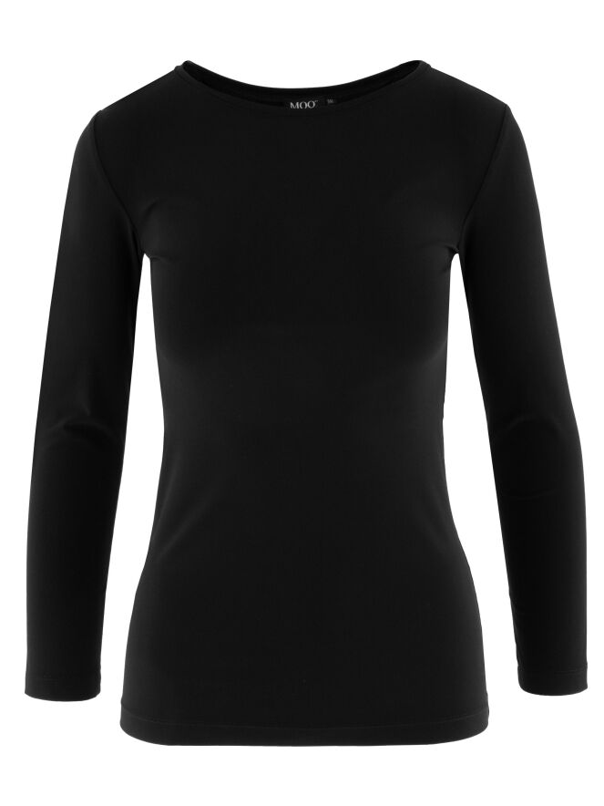 Shirt by Moq in black. Designed with a round neckline and long sleeves, it features a lightly tailored cut that creates a subtly feminine fit. This versatile piece can be washed at 40 degrees.