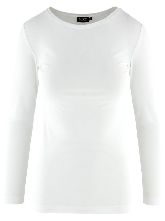 Shirt by Moq in off-white. Designed with a round neckline and long sleeves, this piece features a lightly tailored fit that creates a feminine and comfortable silhouette. It can be washed at 40 degrees.