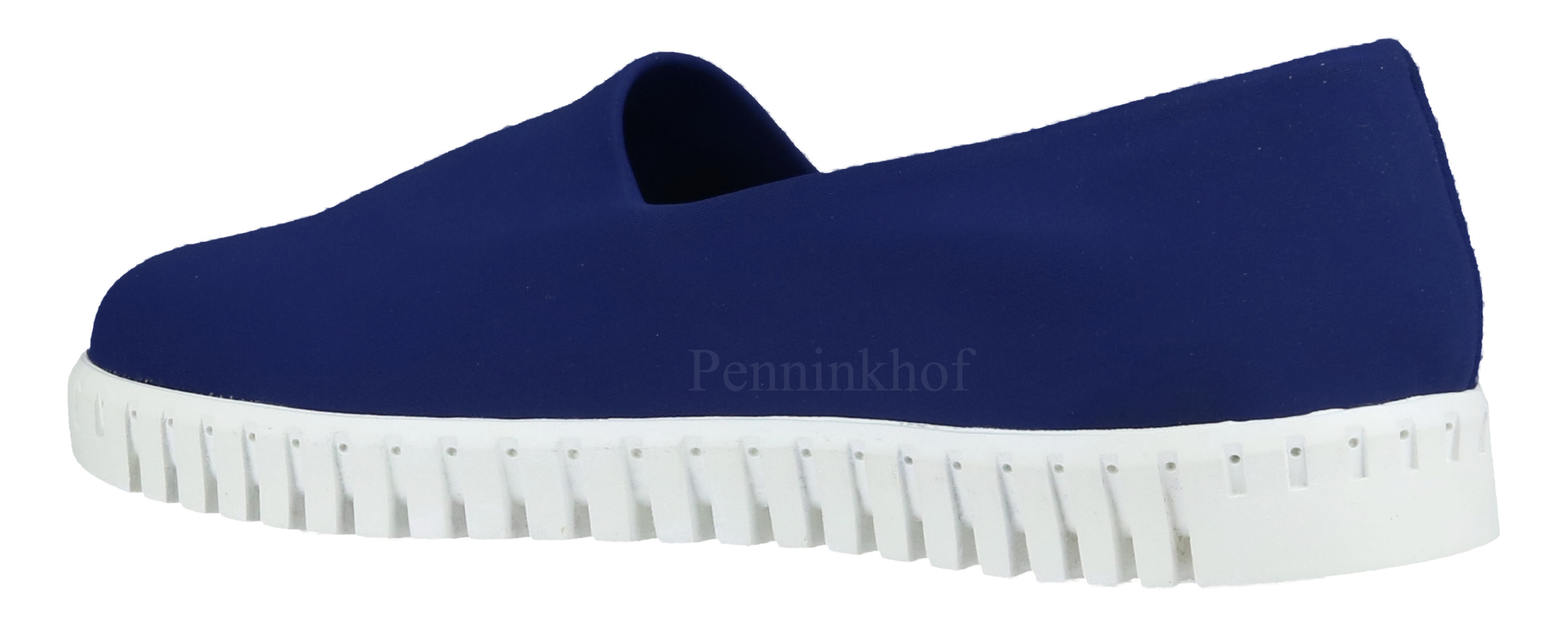 An slip-on from Panara in the color cobalt blue. The fabric is elastic and fits nicely on the foot. The white sole is roughly ribbed.