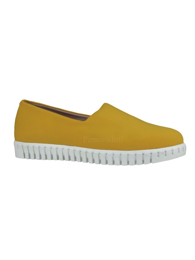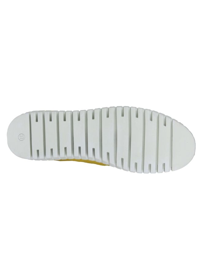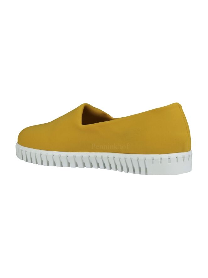 An slip-on from Panara in the color yellow. The fabric is elastic and fits nicely on the foot. The white sole is roughly ribbed.