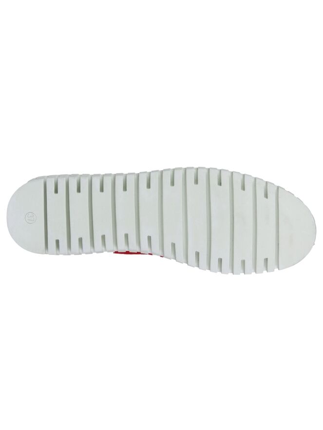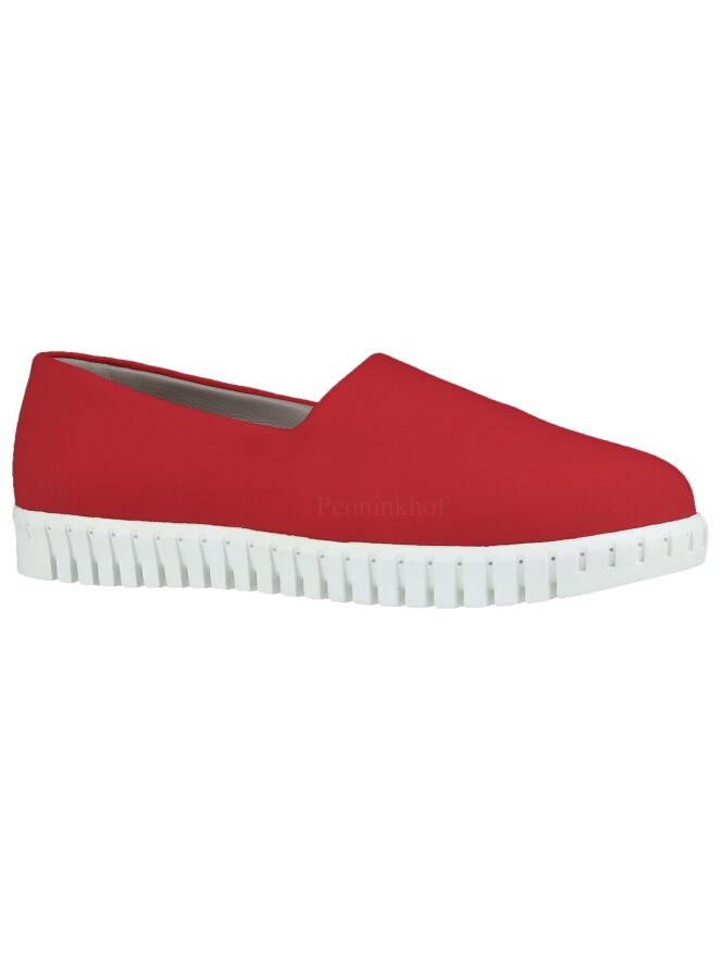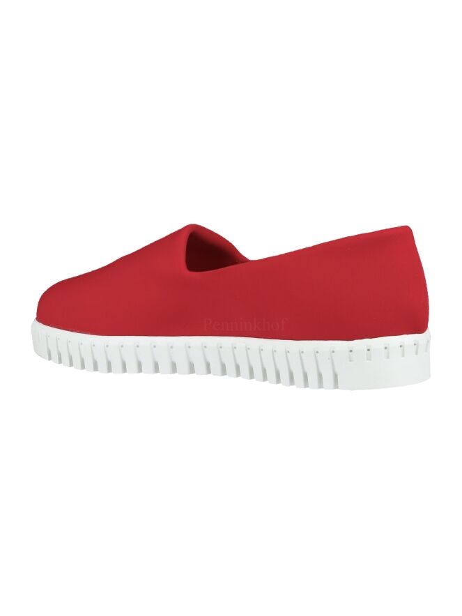 An slip-on from Panara in the color red. The fabric is elastic and fits nicely on the foot. The white sole is roughly ribbed.