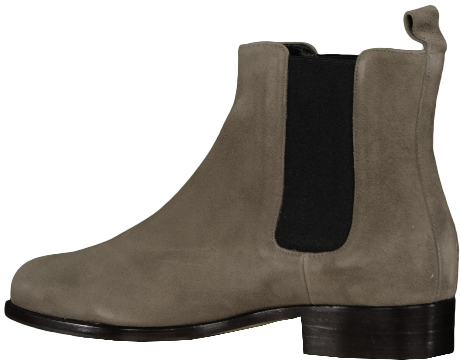A short ankle boot of the brand Panara in the color taupe, the boot has a round toe. On both sides of the shaft is elastic. The boot is lined with leather on the inside.