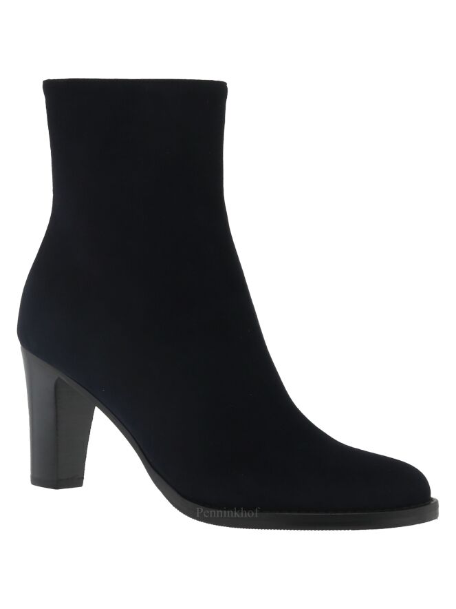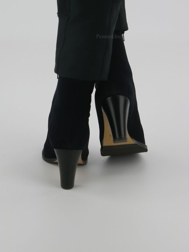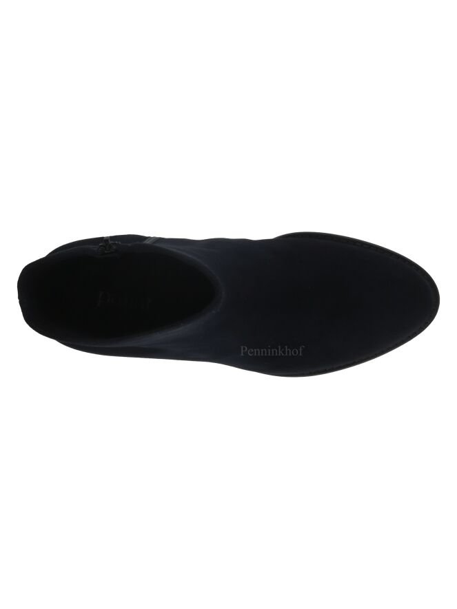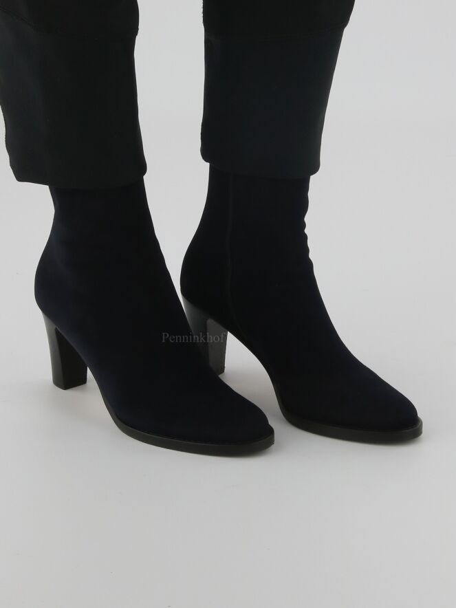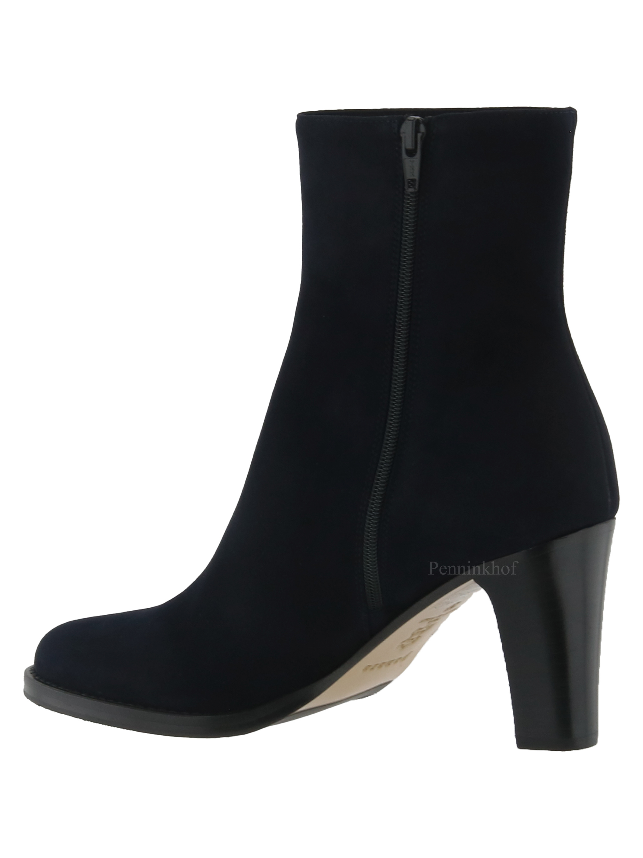 An ankle boot from the brand Panara in the color navy blue. The boot has a round nose and the heel is in a neutral black color. The inside of the boot is lined with leather.