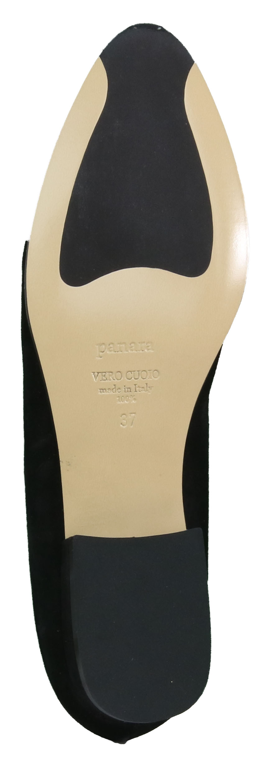 A ballerina of the brand Panara in the color black. The ballerina has a round toe. The ballerina is lined with leather on the inside.
