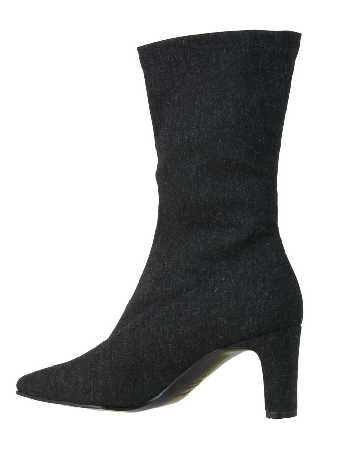 An ankle boot by Panara in the color anthracite. The boot has a pointed nose and the shaft is elastic.