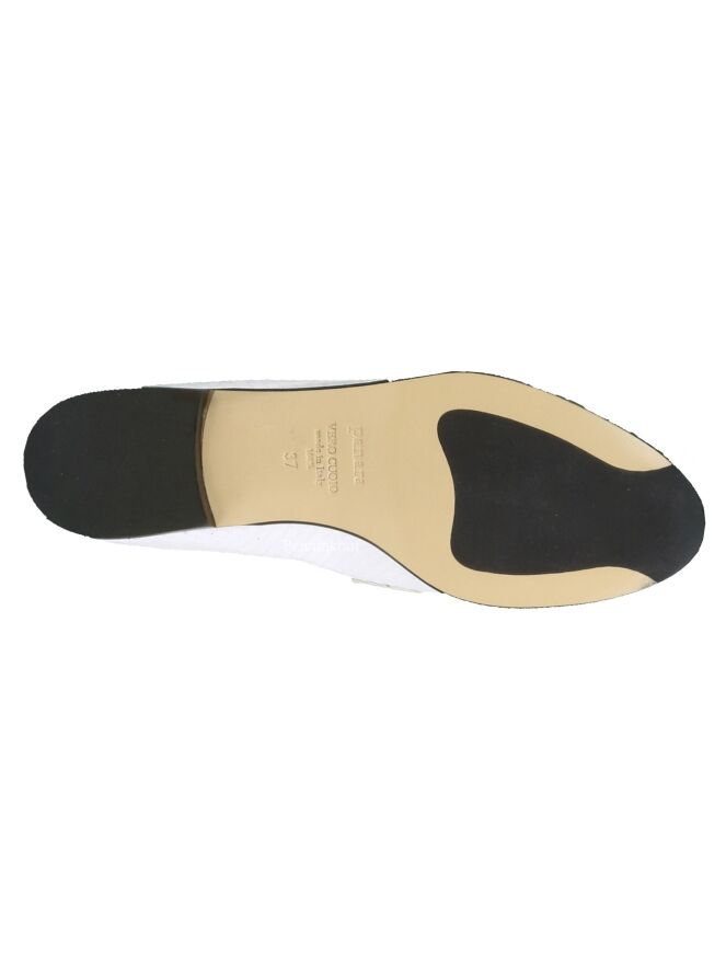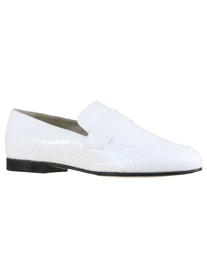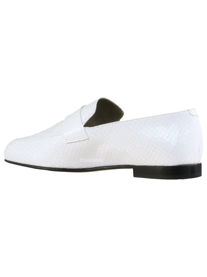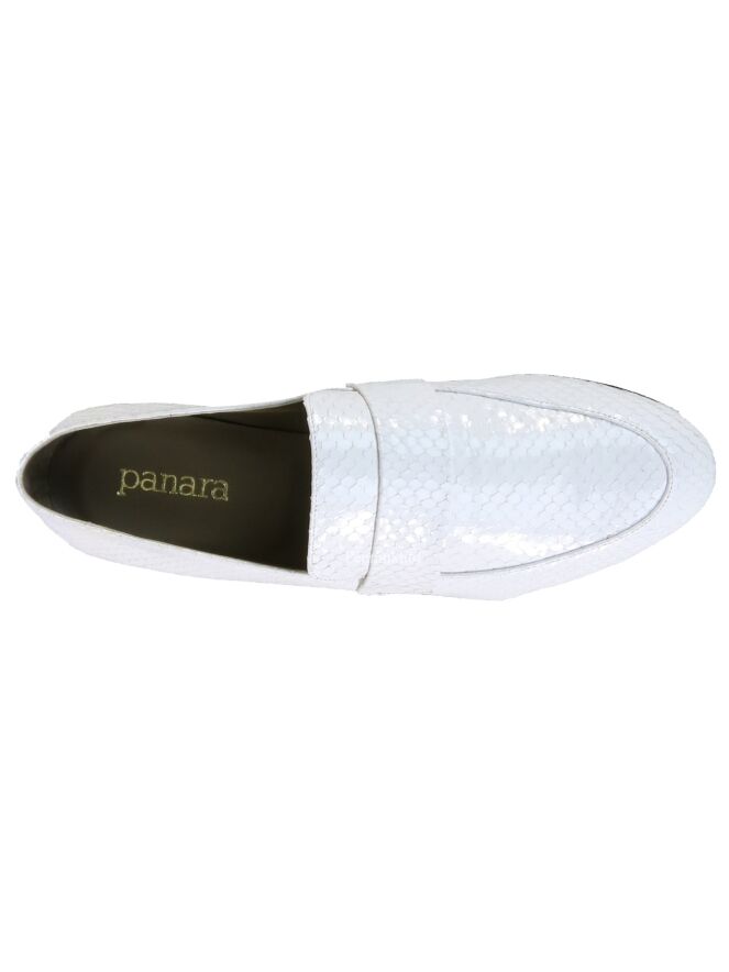 A Panara loafer in a white croco print. The inside is lined with leather.