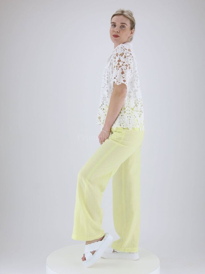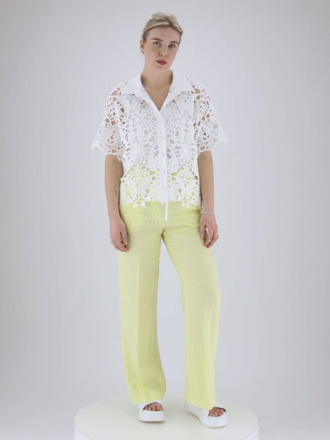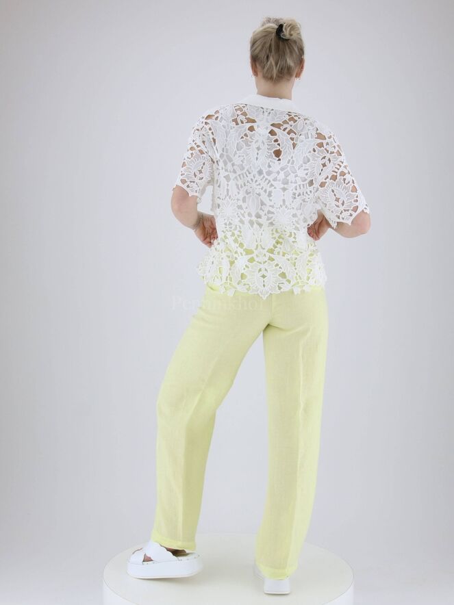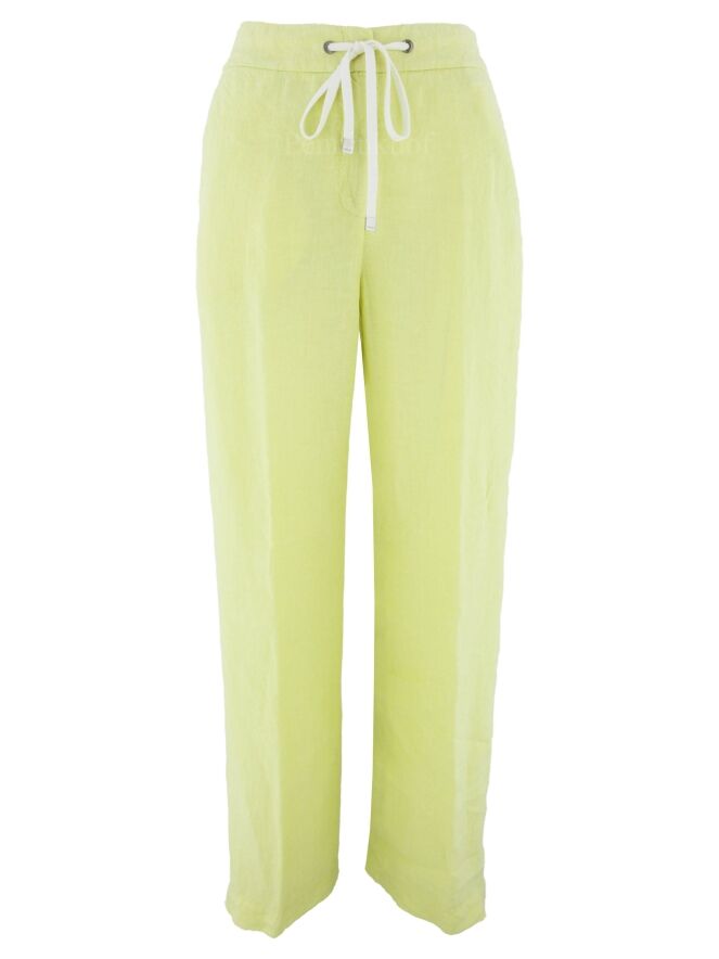 Pants from Peserico in the color soft yellow. At the back is a finely pleated elastic band in the waistband. The pants have side pockets and can be washed by hand.