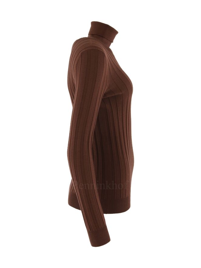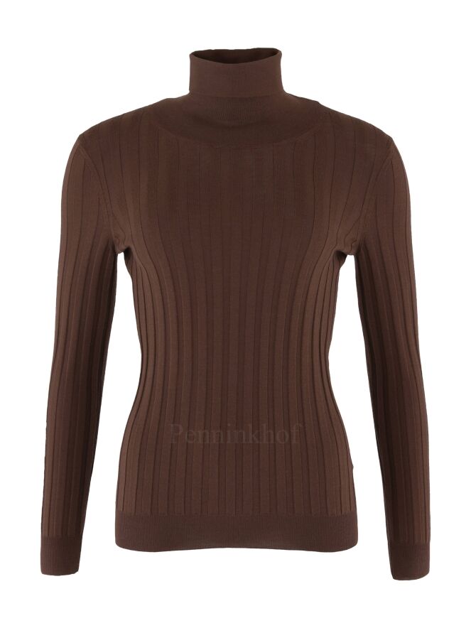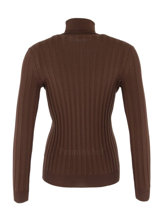 A pullover from Peserico in a wide ribbed pattern in the color brown. The pullover has a turtle col and can be washed by hand.