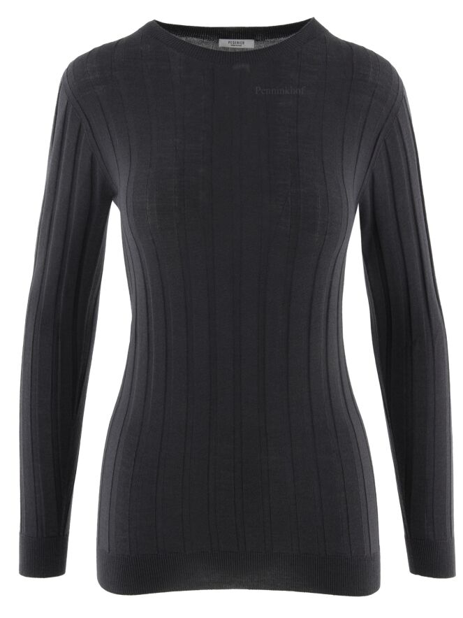 A light pullover from Peserico in a dark gray color. The fabric has a ribbed structure. The pullover has a high neck and long sleeves and can be washed by hand.