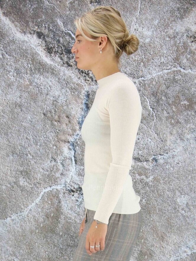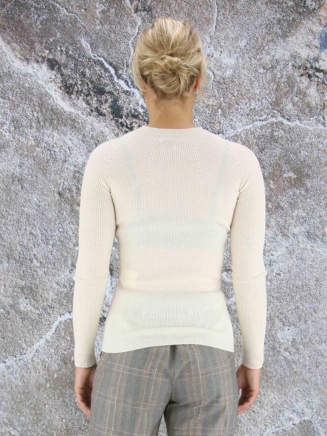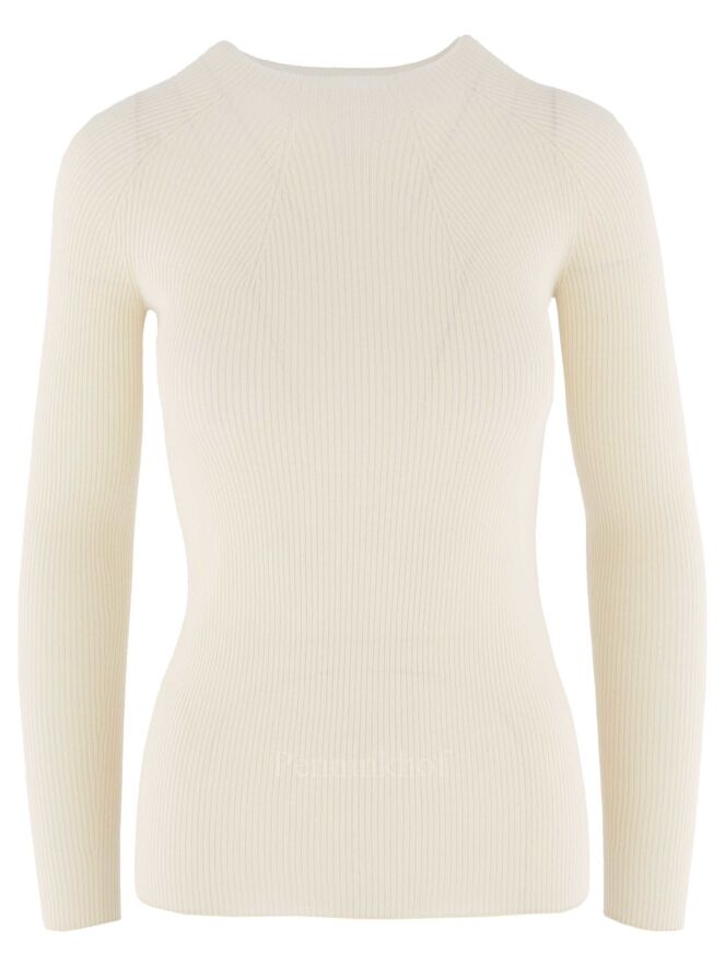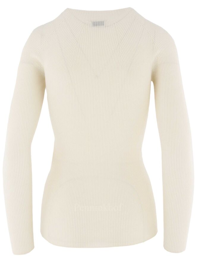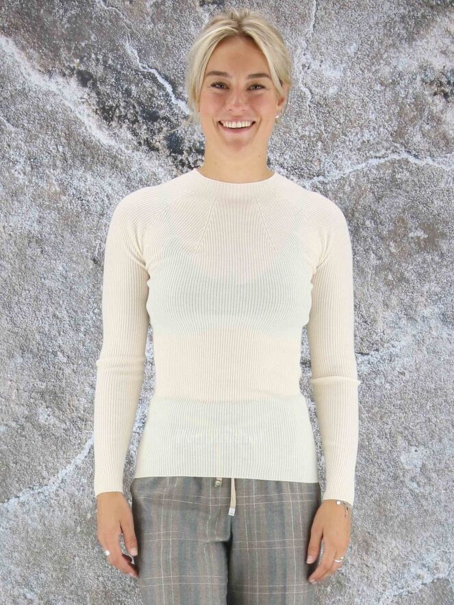 A luxurious fine ribbed pullover from Peserico in a creamy white color. The pullover has a high neck and can be washed by hand.
