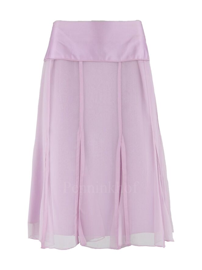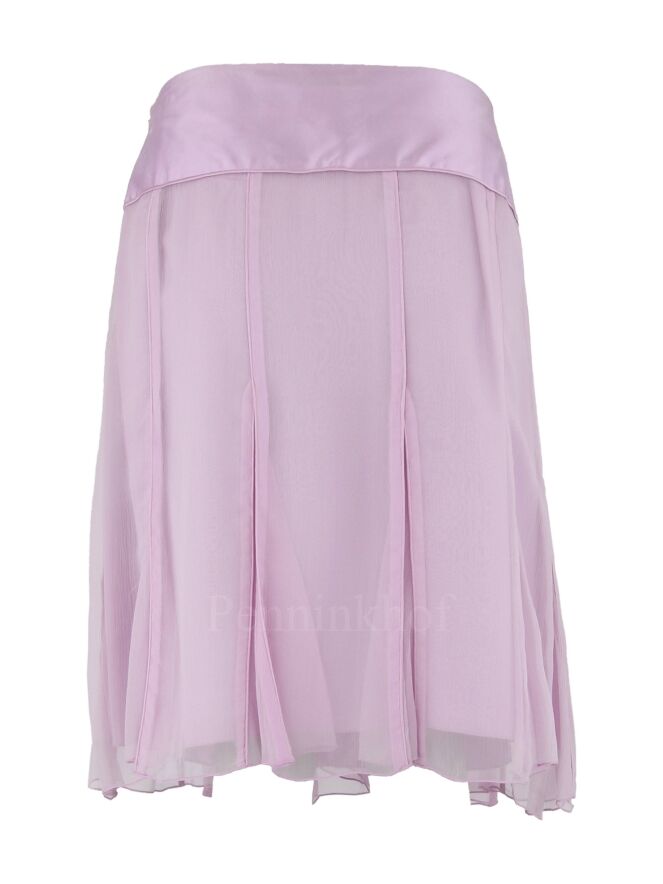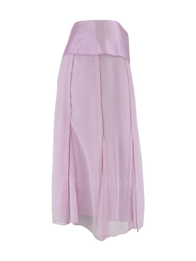 A skirt by Renato Nucci in a pink color. The skirt has a double fabric of which the top fabric is transparent tuile. The skirt has a wide matte shiny board at the waist. This skirt should not be washed.