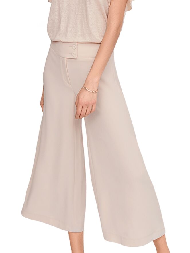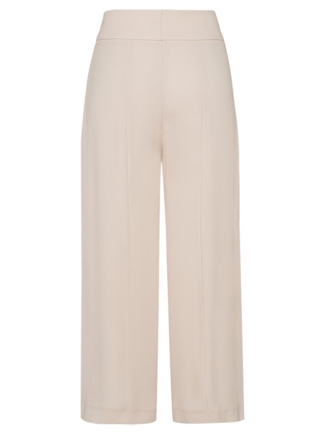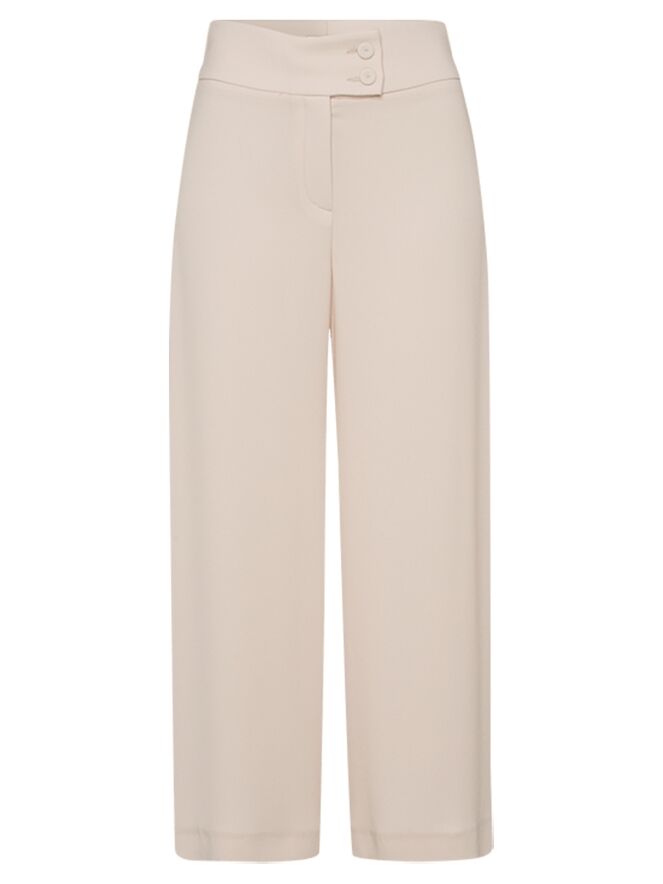 A very wide pants from Riani in a vanilla color. In the waist is a wide waistband with 2 buttons. these pants can be washed at 30 degrees.