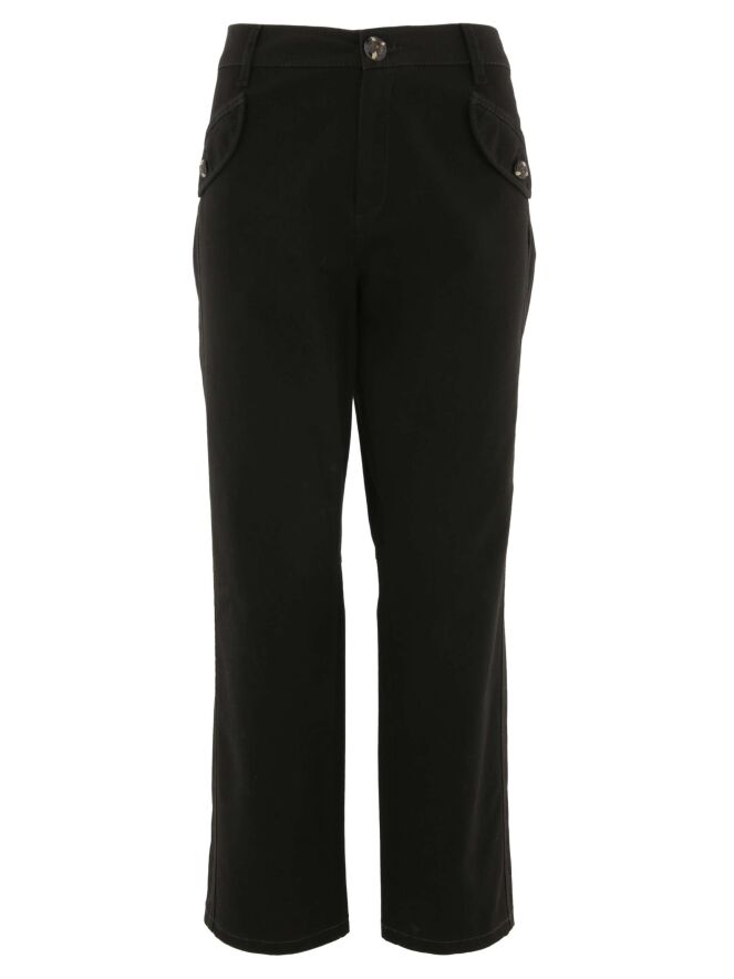 Trousers by Rosner in a mocha brown color. At the front are fake pockets with a fold over and a decorative button. These pants can be washed at 30 degrees.